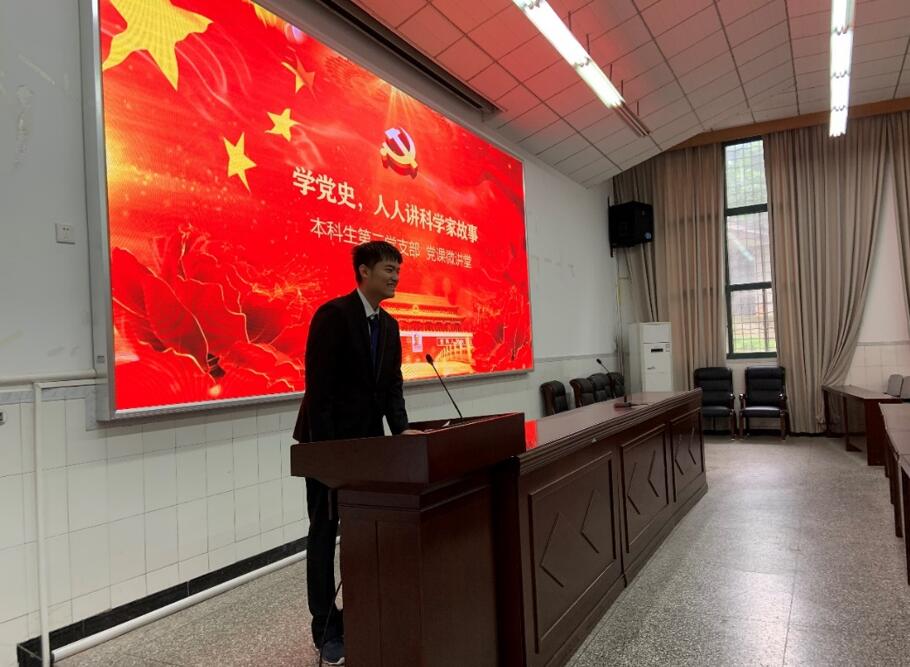 在庆祝中国共产党成立一百周年之际,为加强学生党员理想信念教育,创新党史学习教育形式,5月21日下午,学院本科生第二党支部在物理大楼大阶梯教室举办了“学党史,人人讲科学家故事”党史微党课活动。学院党委书记李余廷、学院纪委委员雷衍连、本科生第二党支部全体学生党员参加活动。本科生第二党支部书记贺颖、党员刘潇涵和邱莉同志担任活动评委。