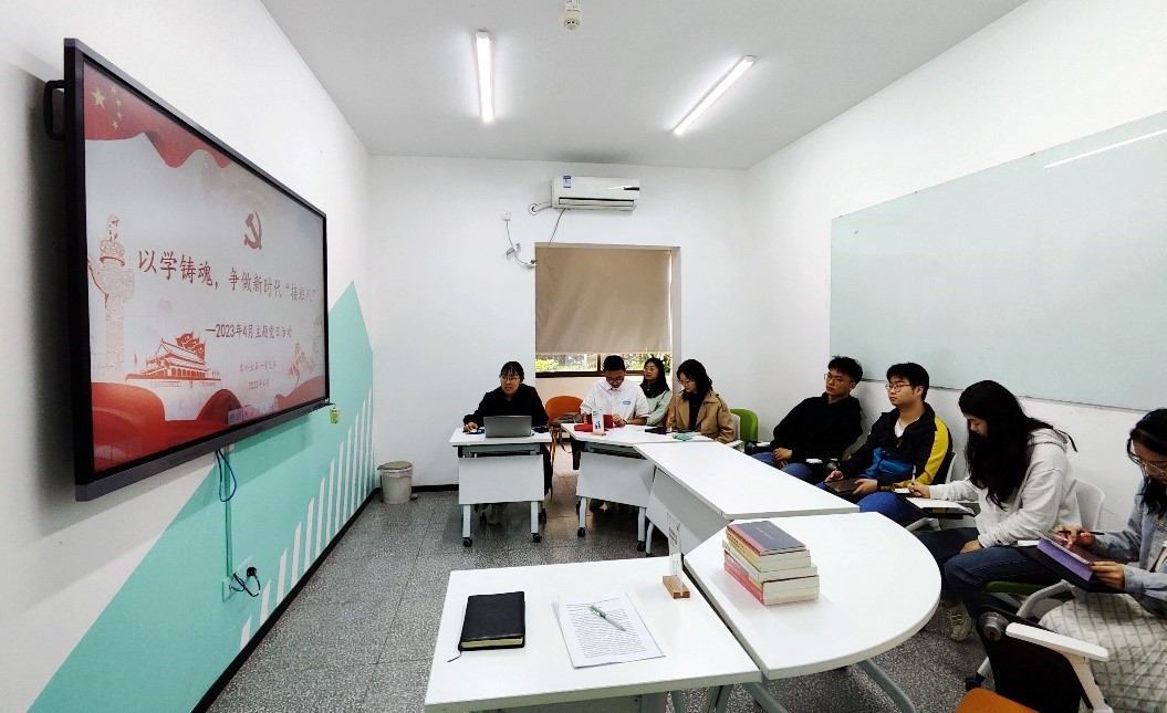 2023年4月26日,学院本科生第一党支部在青竹空间研习室组织召开了“以学铸瑰,争做新时代‘接班人’”主题党日活动。本次主题党日活动由孙小玥同志主持,以线上线下相结合的方式开展。