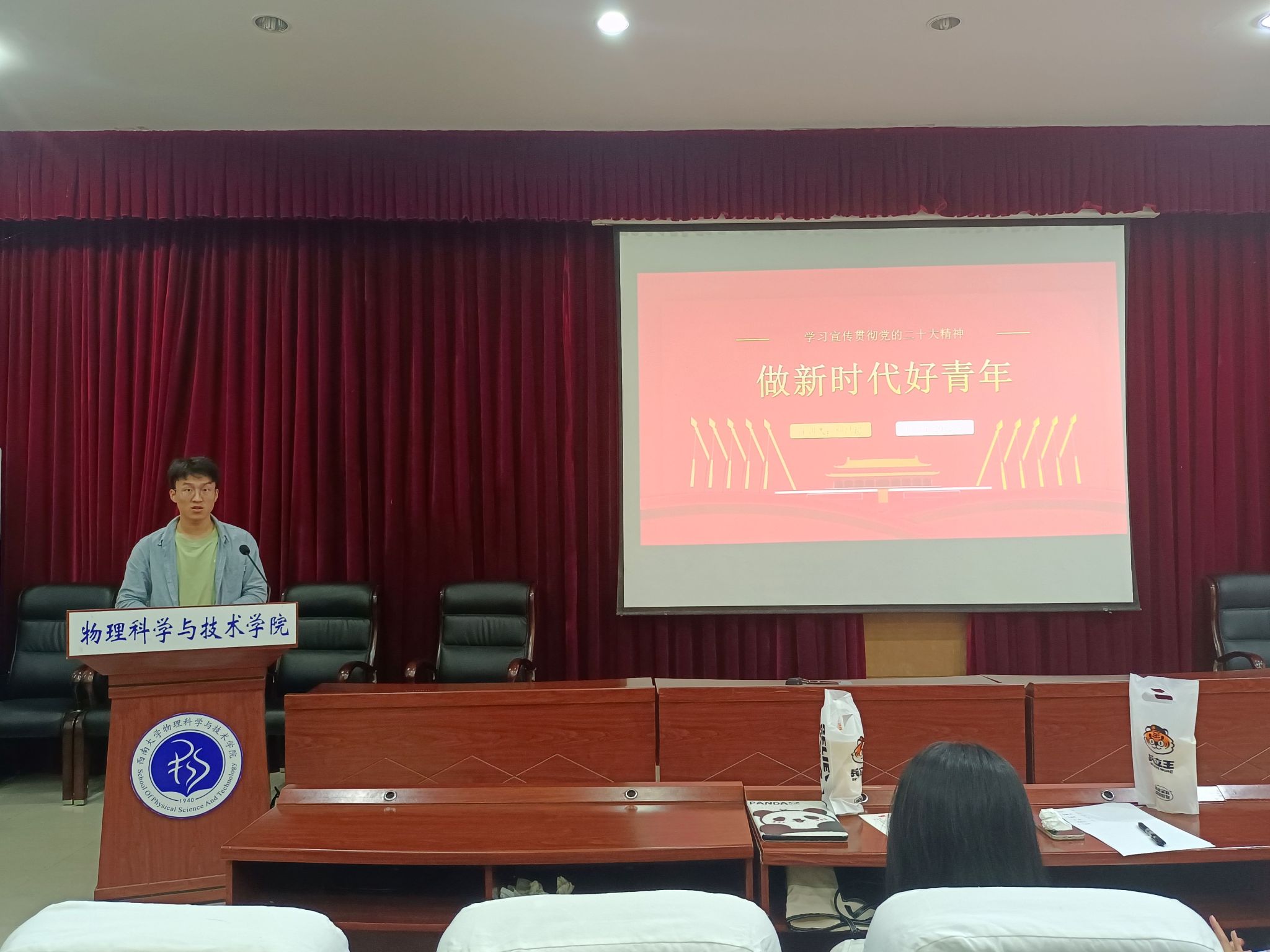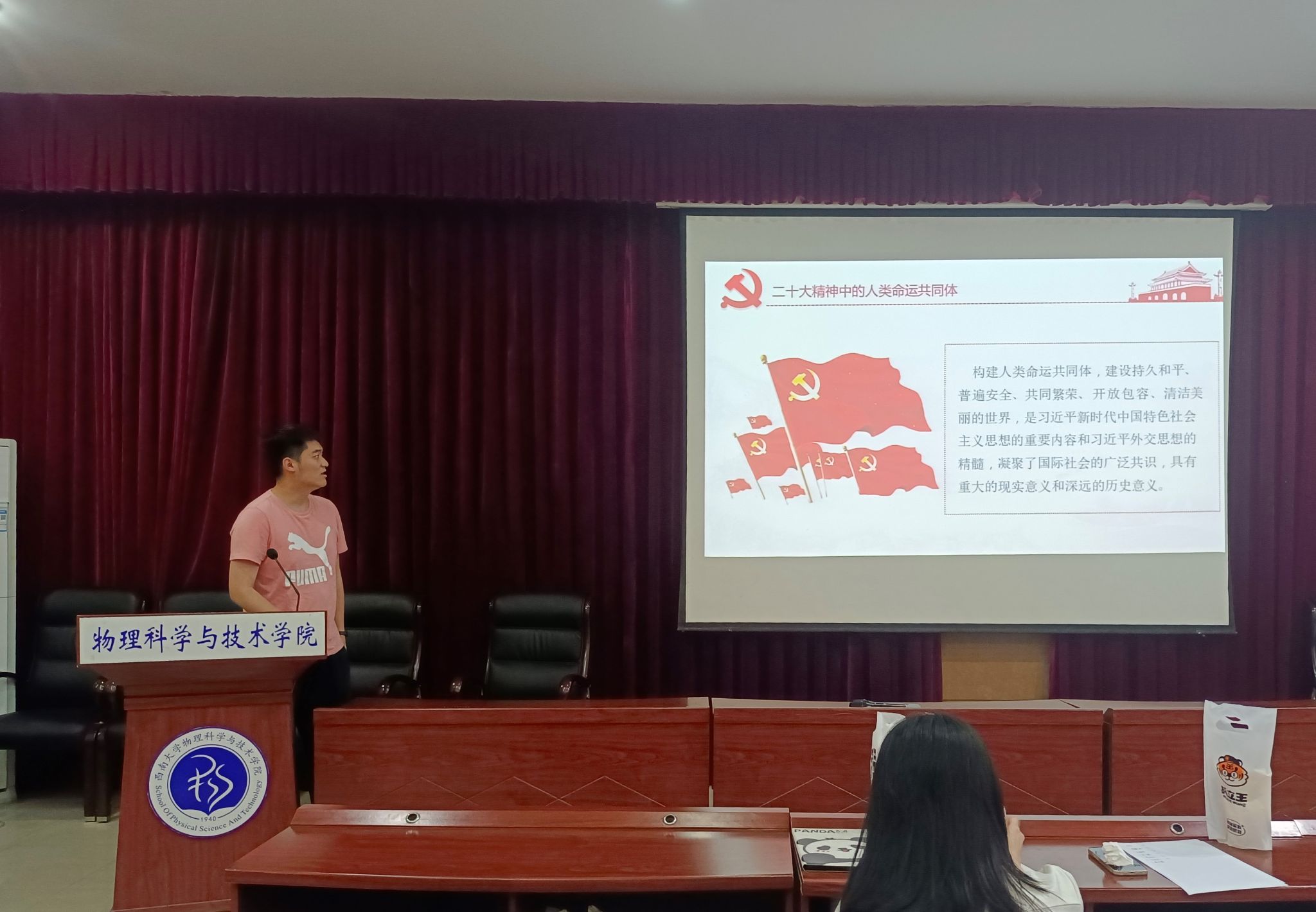 为深入学习贯彻党的二十大精神,推进习近平新时代中国特色社会主义思想主题教育走深走实, 5月18日下午,学院本科生第二党支部在物理大楼小阶梯教室举办了“学习党的二十大奋进新征程”党课微讲堂活动。教育学部2019级学生党员张文清、物理科学与技术学院本科生第一党支部党员张渝、本科生第四党支部王志煜三位同志担任活动评委。