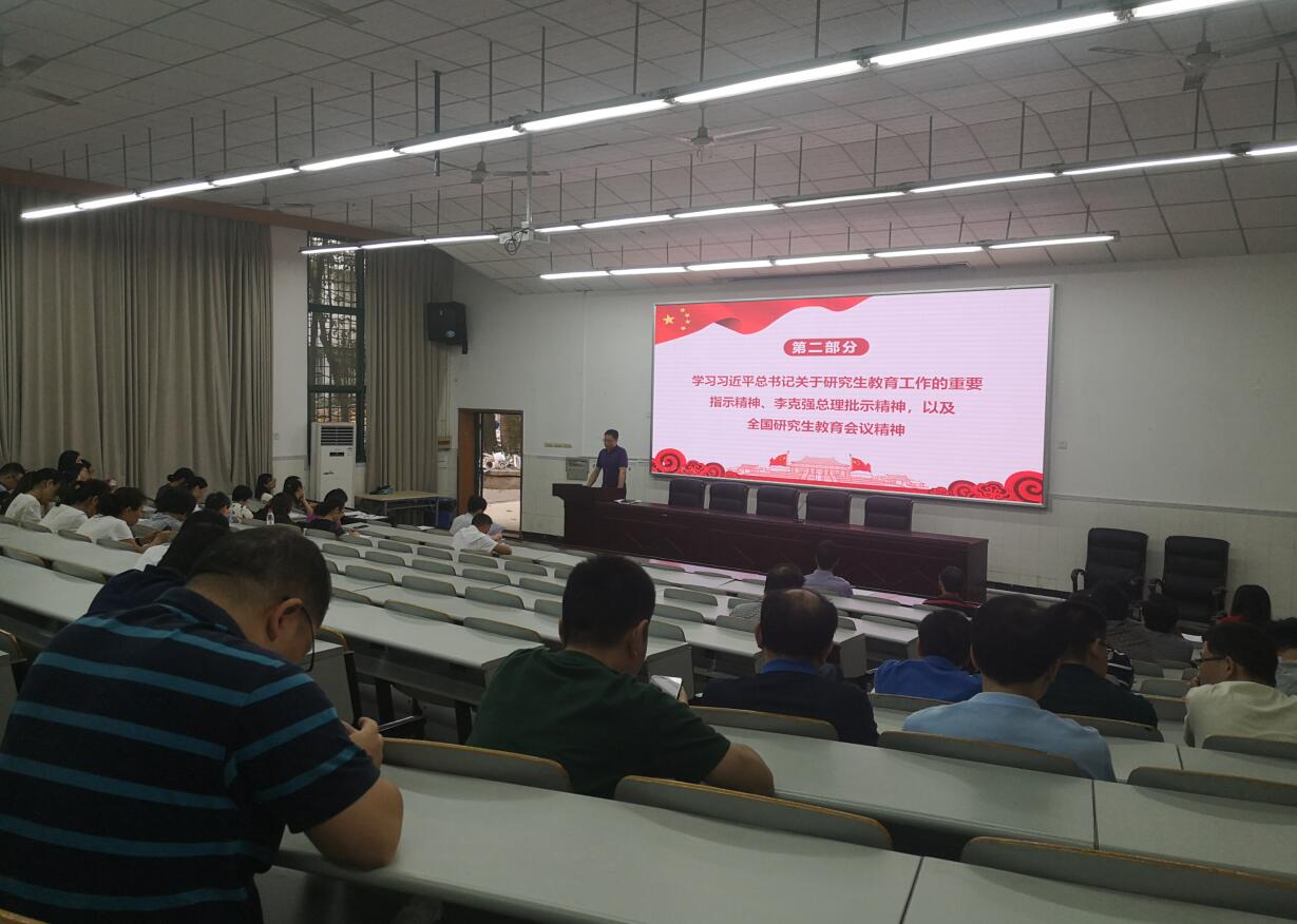接着,李余廷书记从全国研究生会议召开的背景、习近平总书记关于研究生教育工作的重要指示、李克强总理作出的批示以及关于研究生教育培养工作所释放出的信号等方面,向全体教职工传达了全国研究生教育会议的精神。