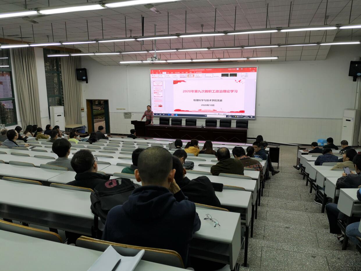 10月9日下午,学院在大阶梯教室组织召开了2020年第九次教职工政治理论学习。学习大会由学院党委书记李余廷同志主持。