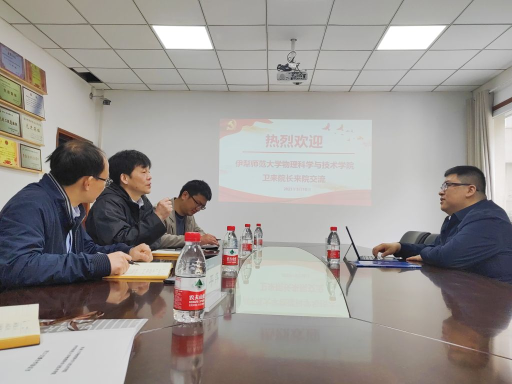 伊犁师范大学物理科学与技术学院卫来院长对学院的热情接待表示感谢。卫院长对伊犁师范大学物理科学与技术学院的创办历史、学科专业、师资队伍、办学特色及发展中存在的问题做了全面介绍,并表达了可通过与我院联合申报项目等方式深入合作的愿望。