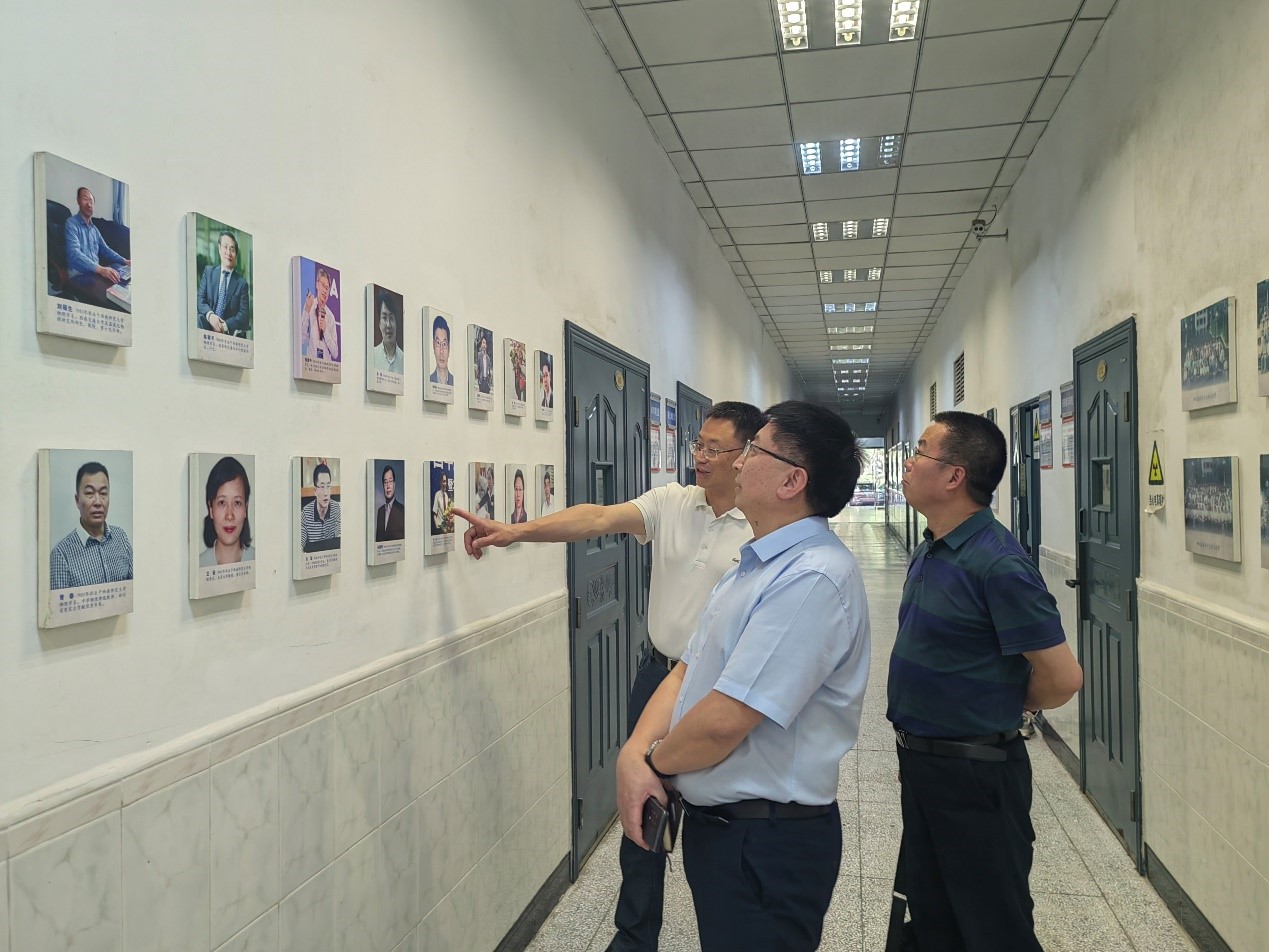 座谈前,刘书记和陈董事长在院领导的陪伴下参观了学院实验室,了解我院实验室建设情况。路过一楼大厅校友墙时,刘书记和陈董事长与同样身为我院校友的李余廷书记一起回顾了学院的光辉院史,追忆物院学子的奋斗历程。