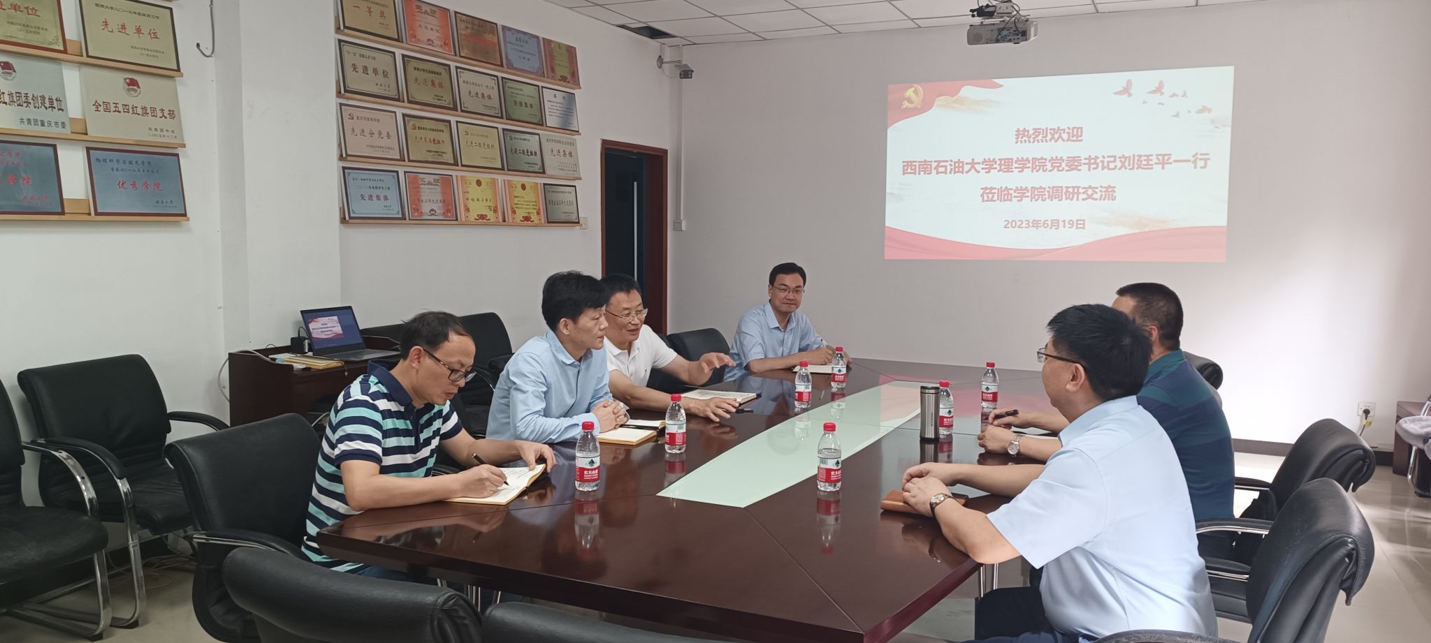 西南石油大学理学院党委书记刘廷平、重庆环科源博达环保科技有限公司董事长陈刚才来我院交流