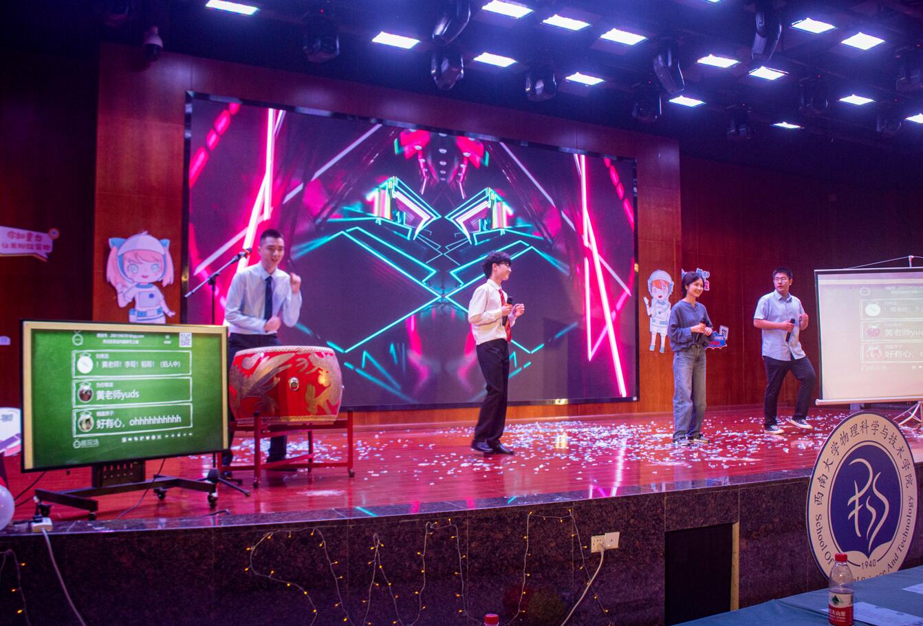 最后,小合唱《错位时空》压轴登场,歌声中饱含学生们的青春誓言和新一代的强国信心,为晚会画上了完美的句号。祝愿2021级物院学子扬帆起航,书写最美好的大学时光!
