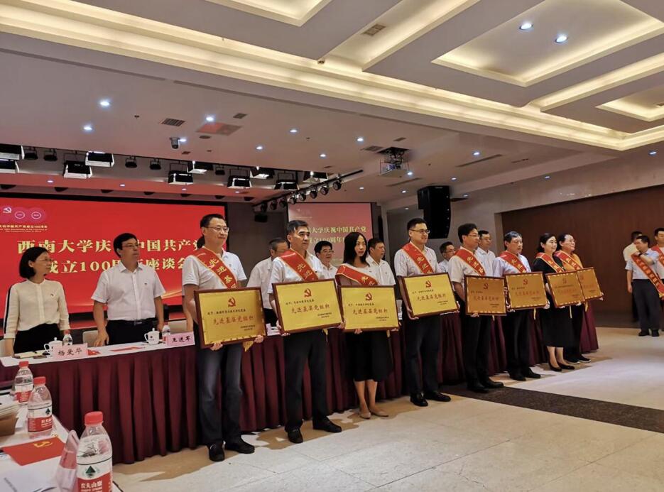 为深入学习习近平总书记在庆祝中国共产党成立100周年大会上的重要讲话精神,表彰重庆市和学校“两优一先”,进一步统一思想、振奋人心、鼓舞士气、凝聚力量,7月8日,学校党委召开了庆祝中国共产党成立100周年座谈会,并表彰了“两优一先”获得者代表。