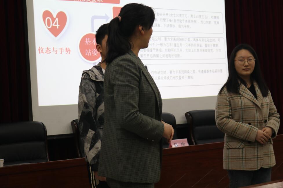 张书记指出大学生在志愿服务的过程中能够体现自己的价值,在与社会接触过程中能获得更多的学习机会和发展机遇。她诠释了“奉献、友爱、互助、进步”志愿服务精神的内涵,介绍了脱贫攻坚、环境保护、文明实践、关爱少年儿童、为老服务、阳光助残六种志愿服务类型。在讲解志愿服务的礼仪要求时,张书记亲自示范,对现场志愿者同学的站姿走姿、表情神态进行了纠正和指导,强调了流畅表达、真诚微笑和认真倾听的重要性。最后,张书记就如何做优志愿服务项目提出了“志愿+”的理念,指出志愿服务应和自身的专业知识与技能相结合,学院打造的志愿者服务团队要兼顾社会需求,并希望大学生朋友们能以最专业的态度和最饱满的状态迎接每次志愿服务活动的开展。