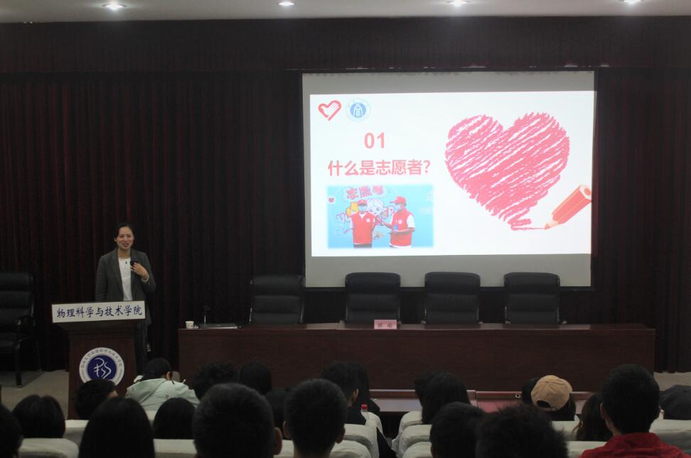 为进一步增强志愿者的服务意识、提升队伍的志愿服务水平,2021年4月9日下午,学院在小阶梯教室举行了“参与志愿 成就你我”志愿服务通识培训讲座,校团委张瑜副书记应邀担任主讲嘉宾。学院“红帽子”青年志愿者服务队队员、科普社学生骨干共计100余人参与了此次培训。