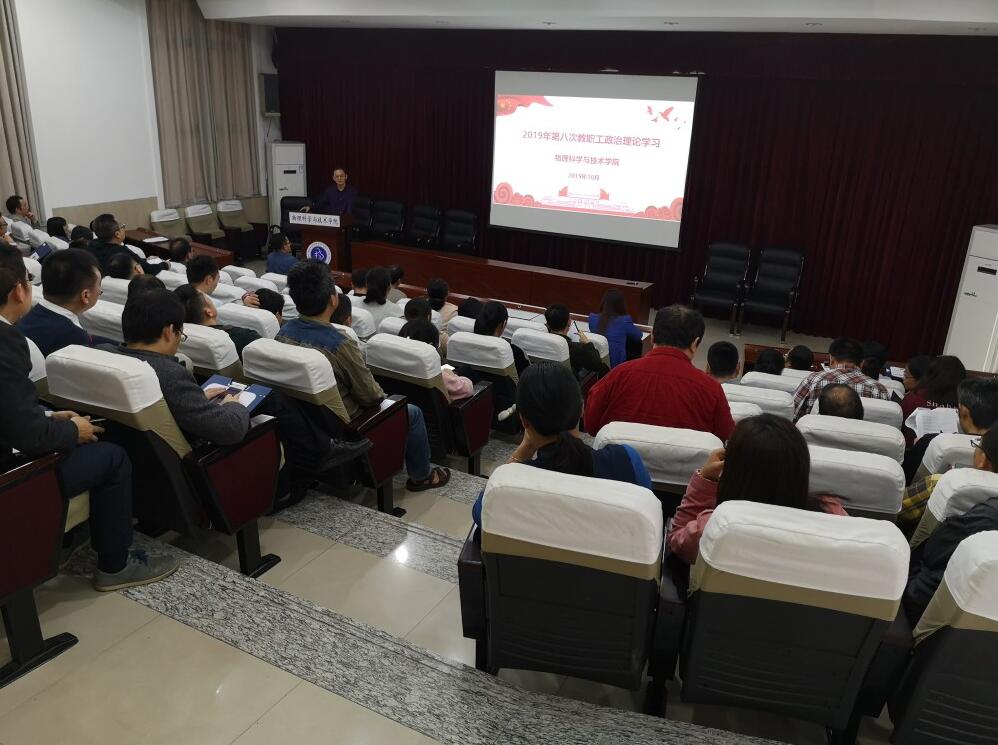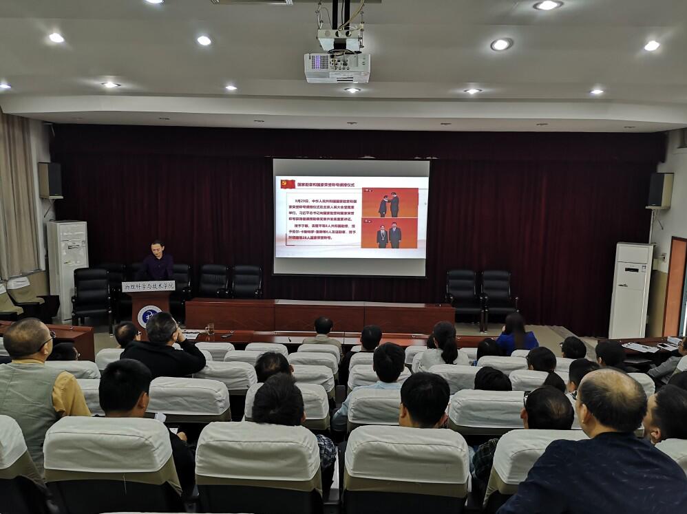 根据学校党委要求和学院“不忘初心、牢记使命”主题教育安排,10月11日下午,学院组织全体在校教职工在小阶梯教室开展2019年第八次政治理论学习,集中学习习近平总书记近期系列重要讲话精神。学习会由学院党委书记李建光主持。