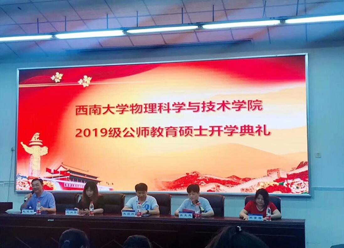 2019年7月11日下午4点,物理科学与技术学院2019级公费师范生硕士研究生入学典礼在学院大阶梯教室举行。学院院长熊祖洪教授、副院长吴正茂教授、副书记刘汭雪老师、院长助理赵建伟副教授,导师代表周素梅副教授、2019级免师教育硕士班班主任卜海东老师、教学秘书熊中碧老师,以及2019级全体新生约150人参加了开学典礼,开学典礼由学院院长助理赵建伟副教授主持。
