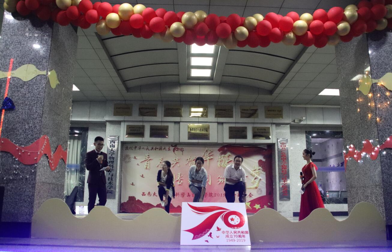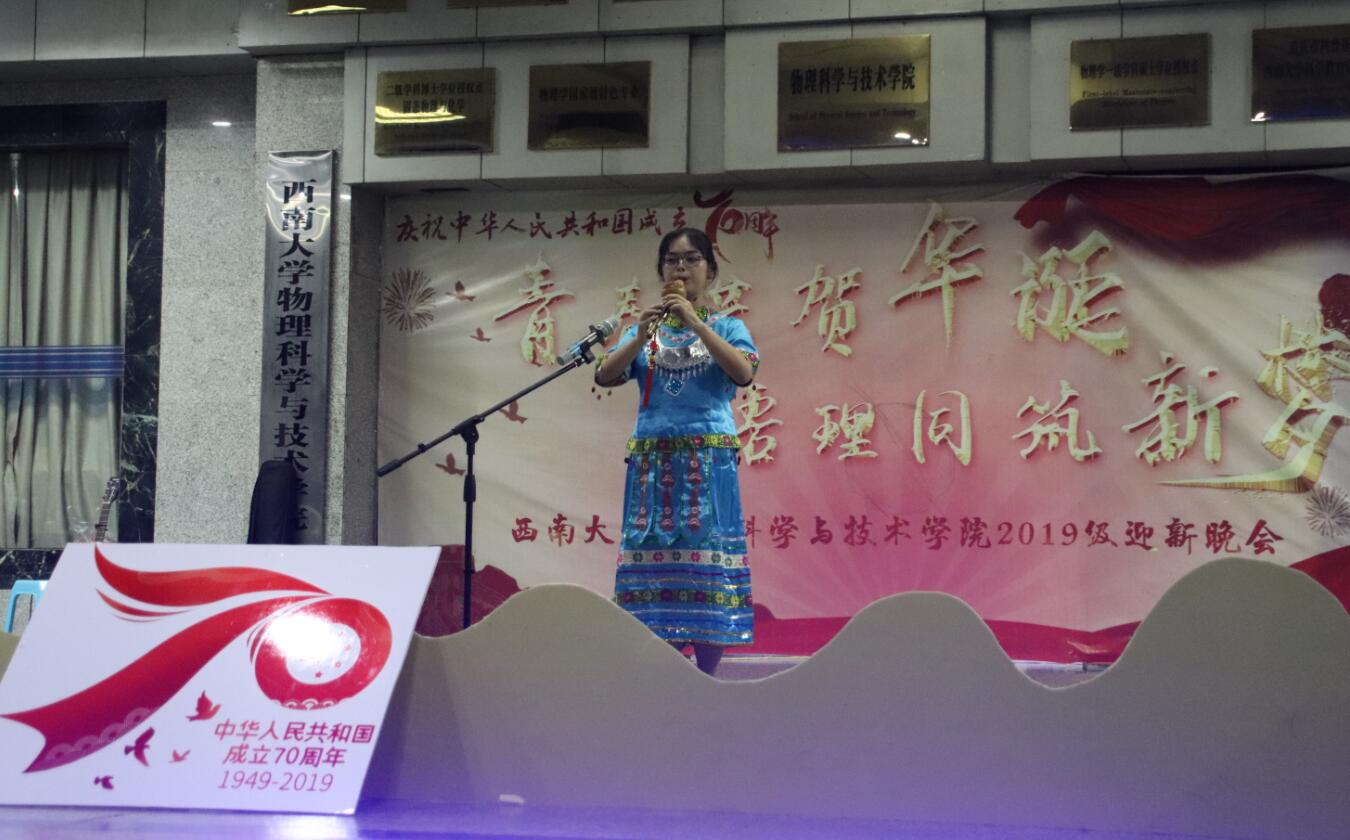 9月20日晚,“青春共贺华诞,悟理同筑新梦”物理科学与技术学院庆祝新中国成立七十周年暨2019级迎新晚会在物理大楼举行。学院党政领导、学院教职员工代表、2019级辅导员班主任及全体本科生参加了晚会。