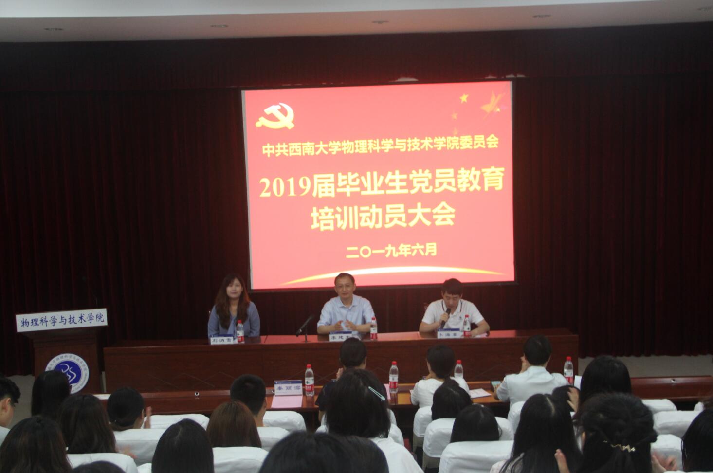6月10日上午,学院2019届毕业生党员教育培训动员大会在小阶梯教室举行。院党委书记李建光、副书记刘汭雪、研究生党支部书记熊中碧、本科生党支部书记王彪、贺颖及60余名毕业生党员参加了动员大会。动员大会由组织员卜海东主持。