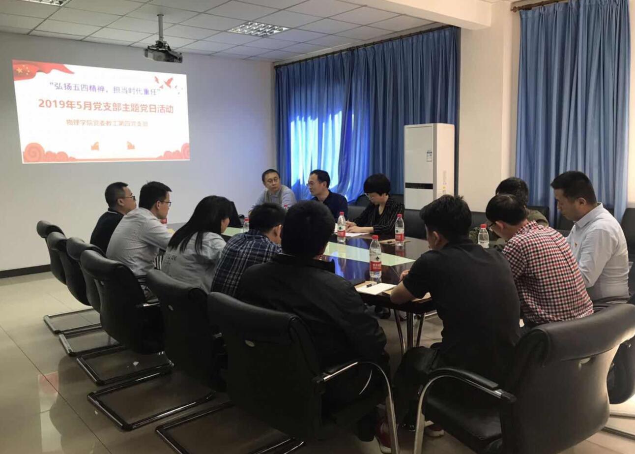 5月10日下午,学院教工第四党支部在学院二楼会议室举行“弘扬五四精神 担当时代重任”主题党日活动,学校纪委副书记、监察处处长朱敏参加指导本次活动。主题党日活动由支部书记李国庆主持。