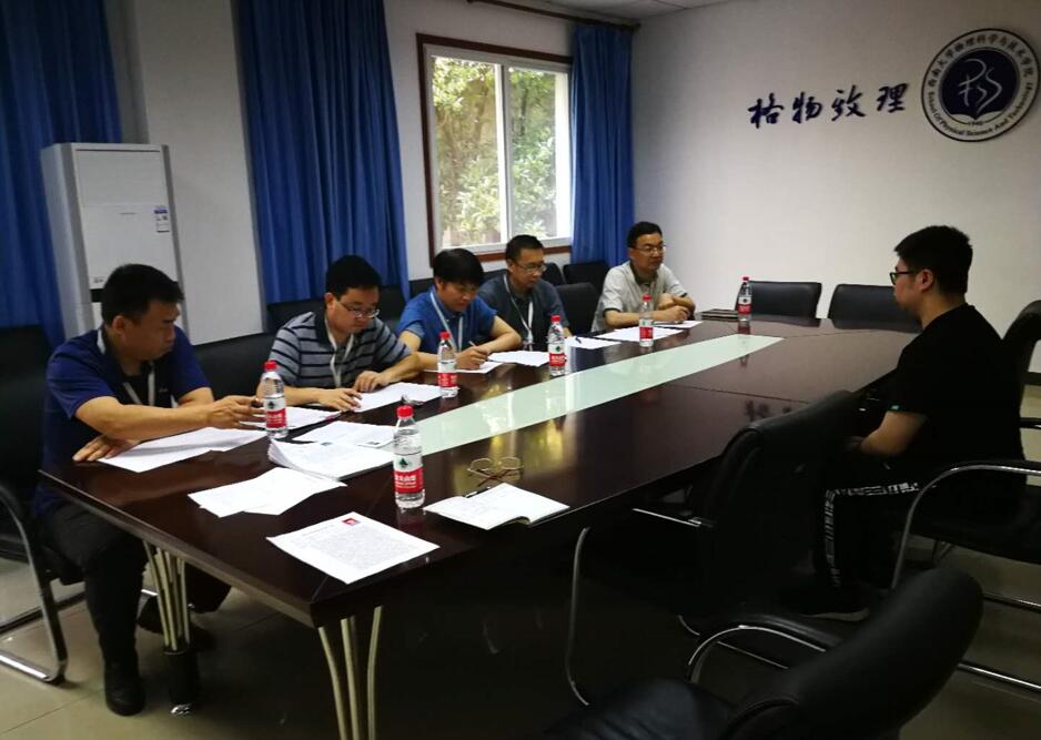 2019年4月25日上午,2019年本科转专业面试考核工作在学院二楼会议室进行。学院院长熊祖洪教授、教学副院长袁宏宽教授、李国庆教授、赵建伟副教授、谭兴文副教授参加本次面试考核。本科教学秘书任风娥老师负责组织工作,袁宏宽副院长主持考核工作。
