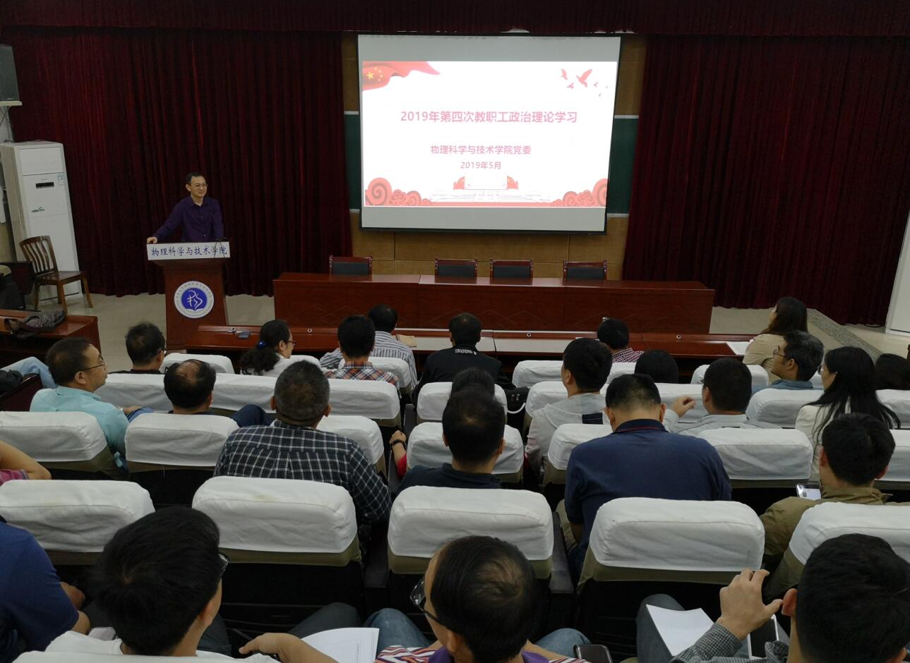 根据学校党委统一安排,5月5日下午,学院组织全体在校教职工在小阶梯教室开展2019年第四次政治理论学习,集中学习习近平总书记近期系列重要讲话精神。学习会由学院党委书记李建光主持。
