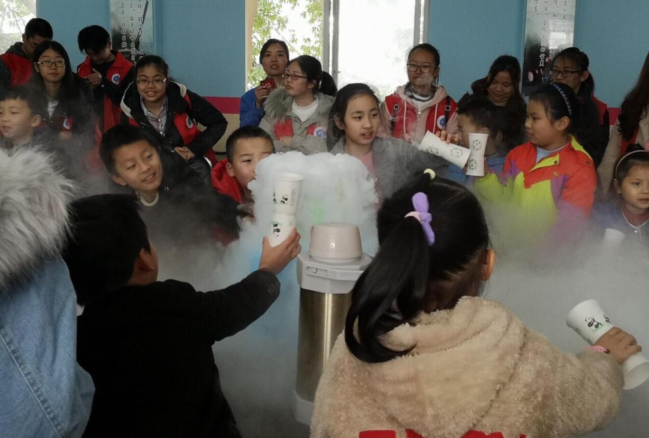 这次进社区,学院的专业社团还精心组织了“垃圾分类—请带‘我’回家”的公益科普体验活动,吸引了30多名社区儿童和青少年参与。妙趣横生的“水火箭”“纸杯飞行器”科技小制作引导小朋友们动手动脑,变废为宝;腾云驾雾的干冰挥发场面,让孩子们惊呼神奇;激烈的垃圾分类知识竞答,更是激发了大家学习科学知识的劲头……整个过程全免费,孩子们学知识还能动手,家长们也看得津津有味。