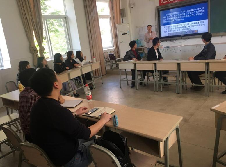 4月3日下午,学院副院长袁宏宽、指导教师邓磊和辅导员王彪走入重庆一中大学城分校看望实习生。每位实习生都详细介绍了实习情况,反思了自己存在的问题。高二年级主任苏公祥等实习单位指导老师对实习生的表现表示充分肯定,并提出了非常实用的改进建议。随后,袁院长和邓老师就实习生提出的问题一一答疑解惑。