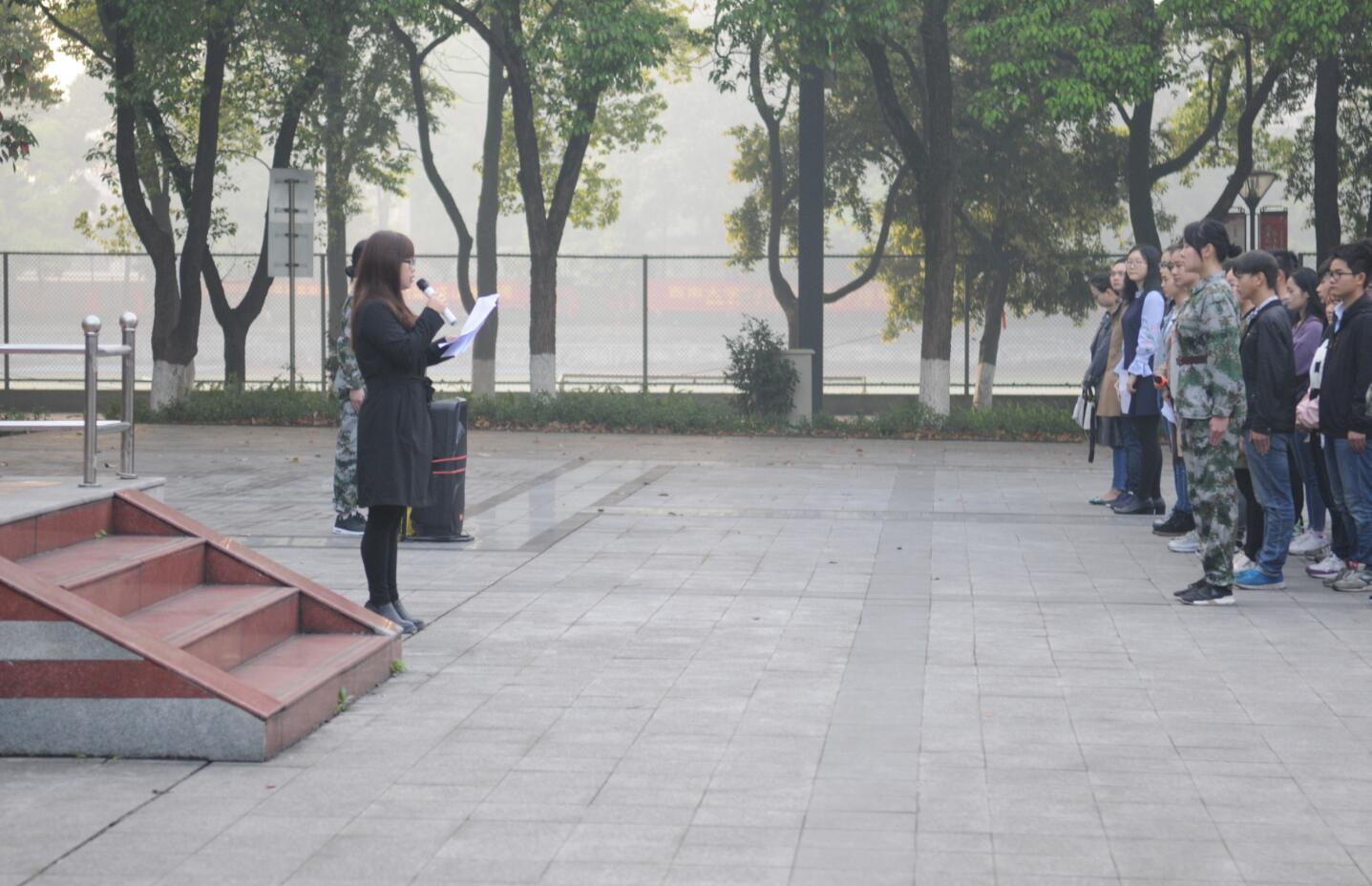 升旗礼毕,院党副委书刘汭雪讲话,她由两会的胜利闭幕引出当代青年应有的历史选择和使命担当,指出当代大学生不应躲避竞争、躲开奋斗,盲目推崇“佛系”文化。随后,刘书记代表学院对同学们提出了“勤学博闻,勇于担当”“明辨求真,善于思考”“创新求变,勤于实践”三点希望。