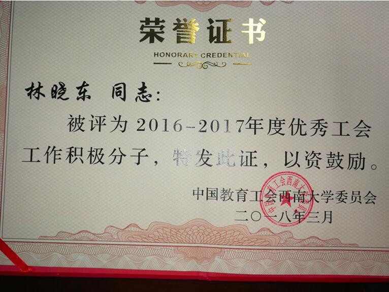 在本次教代会上,我院李建光书记、李加兴老师、林晓东老师分别获得了2016-2017年度优秀教职工之友、优秀工会工作者、优秀工会工作积极分子称号。