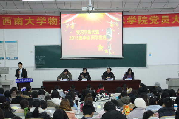 2018年1月10日下午,学院在大阶梯教室举行2015级实习动员大会。院党委副书记刘汭雪、教师教育系主任赵保钢教授、物理教育教研室副主任陈晓莉副教授、2015级辅导员王彪出席动员会,2014级学生代表和2015级全体免费师范生参会。