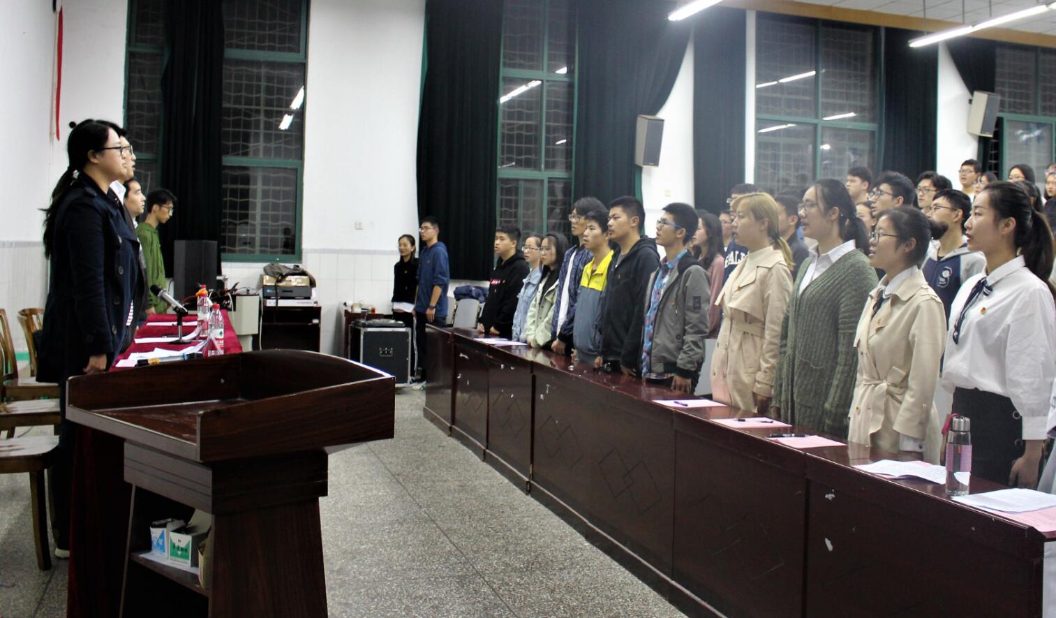 团校副校长、学院团委书记贺颖老师宣读了团校培训方案,介绍了团校的指导思想、培养目标、培训内容、培训形式等内容。团校培训班班主任、2018级辅导员卜海东宣读了团校学员管理办法,对团校的课堂纪律、考核方法进行说明。随后,学院2017年秋季团校培训班学员代表邢玉陟同学发言,以“我们为什么要参加团校” “上团校我们应当学什么” “我们应当如何进行团校学习”引出自己的思考,倡议大家成为一名合格的共青团员、优秀的学生干部。学院第十三届学生会主席朱一凡同学代表本期团校学员发言,作出郑重承诺:“厚植爱国情怀,坚定理想信念;坚持求真务实,树立先锋模范;严守团校纪律,珍惜学习机会”。