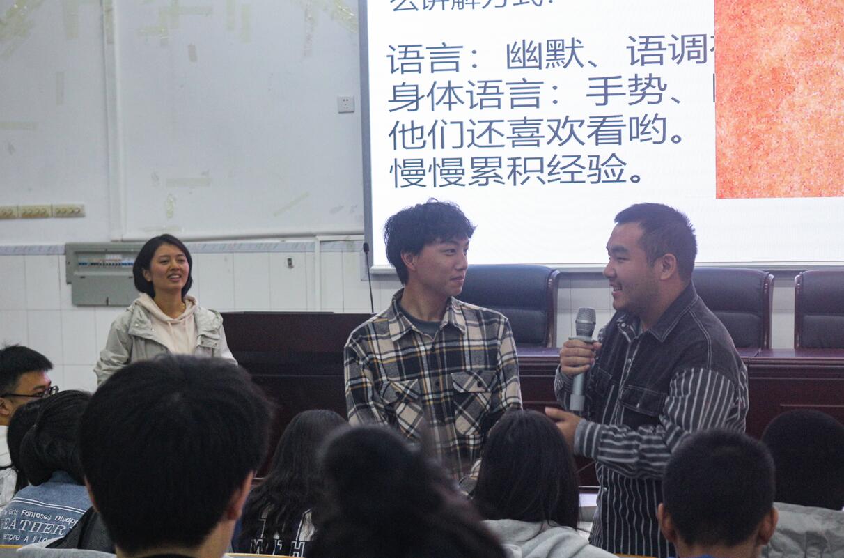 围绕“如何提高低龄儿童科普课堂的教学实效性”这一话题,康老师通过积极发问、假设场景、模拟对话的方式引导大学生进行思考。互动讨论过后,康老师进行了总结:一是提前商议制定课堂纪律公约;二是利用幽默的语言、丰富的活动、正面鼓励来提升儿童的学习兴趣。