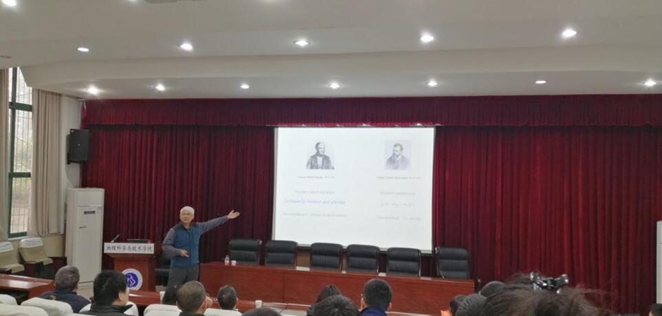 2021年12月23日下午,上海大学敖平教授应学校邀请来我院进行学术交流,为大家带来一场题为“统一物理学和生物学动力学规律的新数学结构”的精彩报告。学校张卫国校长主持了报告会,重庆大学有关专家、我校蚕桑纺织与生物质科学学院、生命科学学院以及我院的师生参加了此次报告。