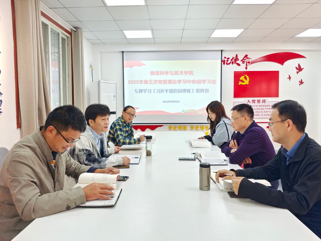 10月12日下午,学院在一楼党建活动室举行2022年第五次党委理论学习中心组学习会,深入学习《习近平谈治国理政》第四卷,交流心得体会。学院党委理论学习中心组成员参会,学院党委书记李余廷主持会议。