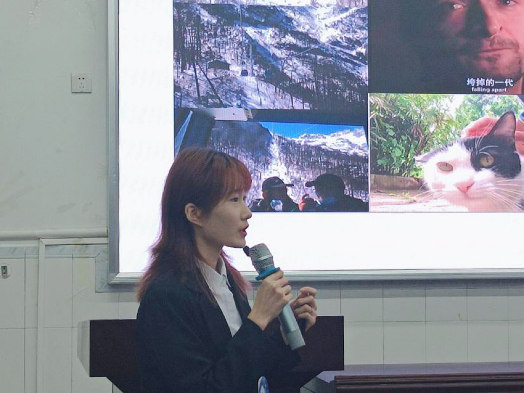 2019级师范组随后上场答辩。吴琪同学在校时参与了校级创新训练项目,大学生创新创业训练计划均获优异成绩。在外实习时,积极协助课堂建设,荣获“双佳实习老师”称号。她告诉在座同学们:“发光并非太阳专利”,我们都可以成为努力发光,传递温暖的人。