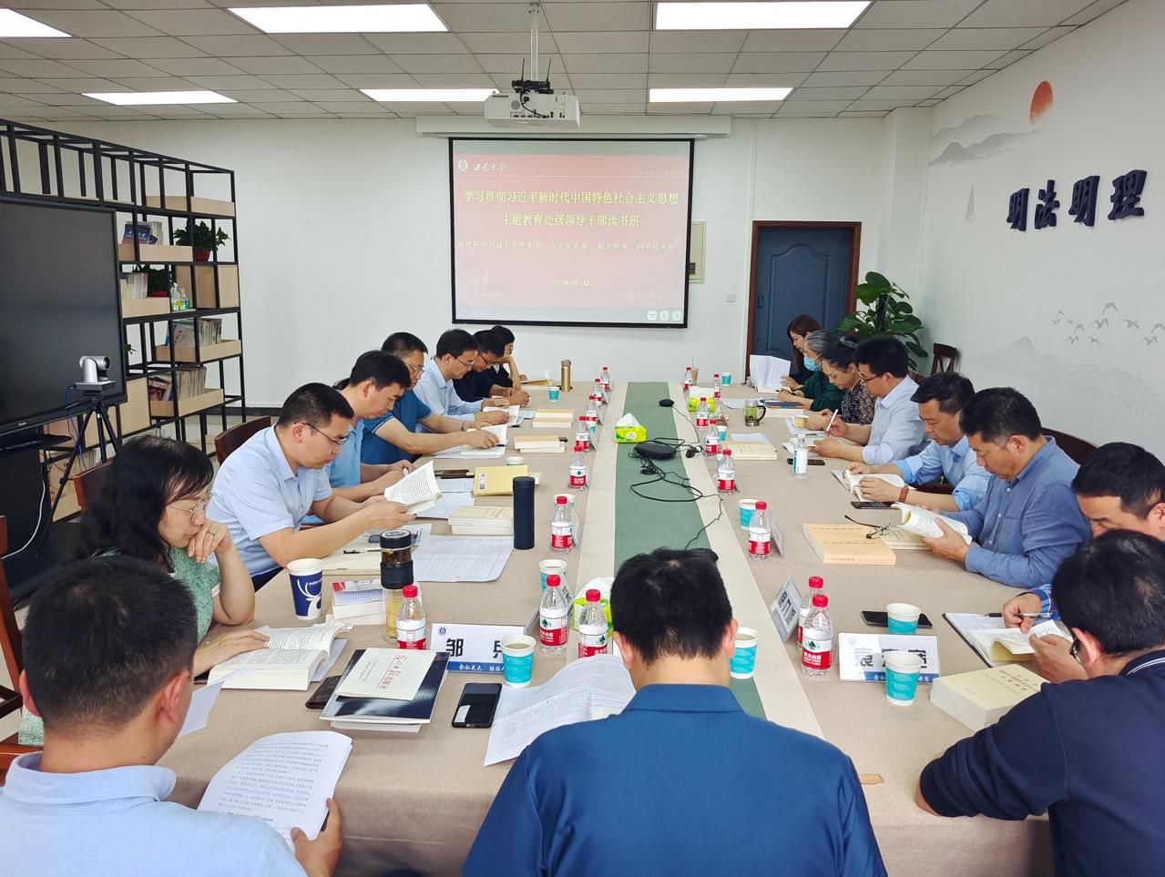 按照学校领导干部学习贯彻习近平新时代中国特色社会主义思想主题教育领导干部读书班统一安排,5月11和12日下午,主题教育读书班第十组在法学院409会议开展专题四和专题五集中学习。物理科学与技术学院党委、法学院党委、机关党委和科学技术处领导班子全体成员参加,学习由学院党委书记李余廷主持。