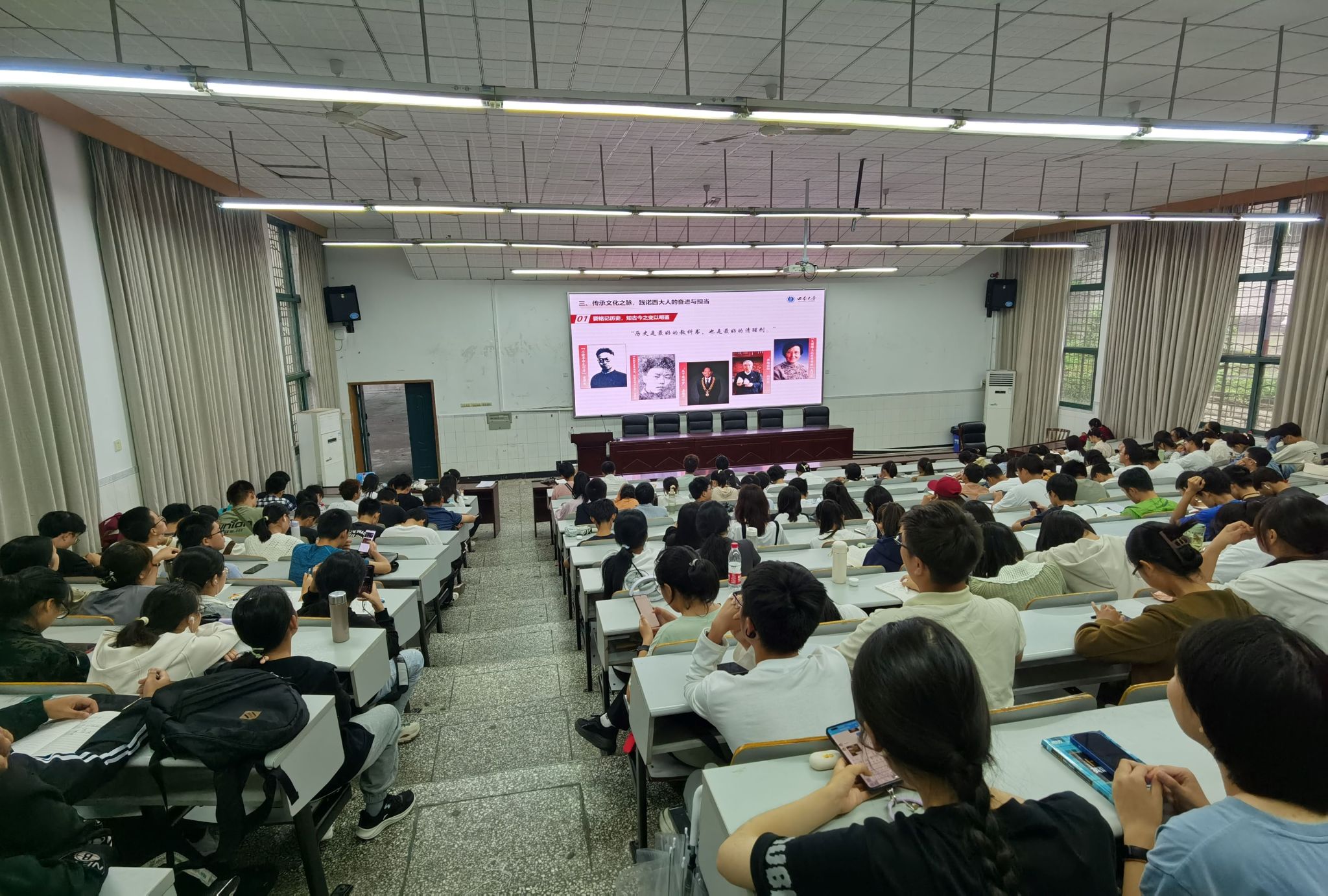 926日下午,按照学校统一安排,全体新生在物理大楼大阶梯教室观看了开学第一课直播,在重庆历史故事、校友励志讲述与学校党委书记寄语讲话中感悟西大人的坚守和追寻,体认西大人的理想与情怀。