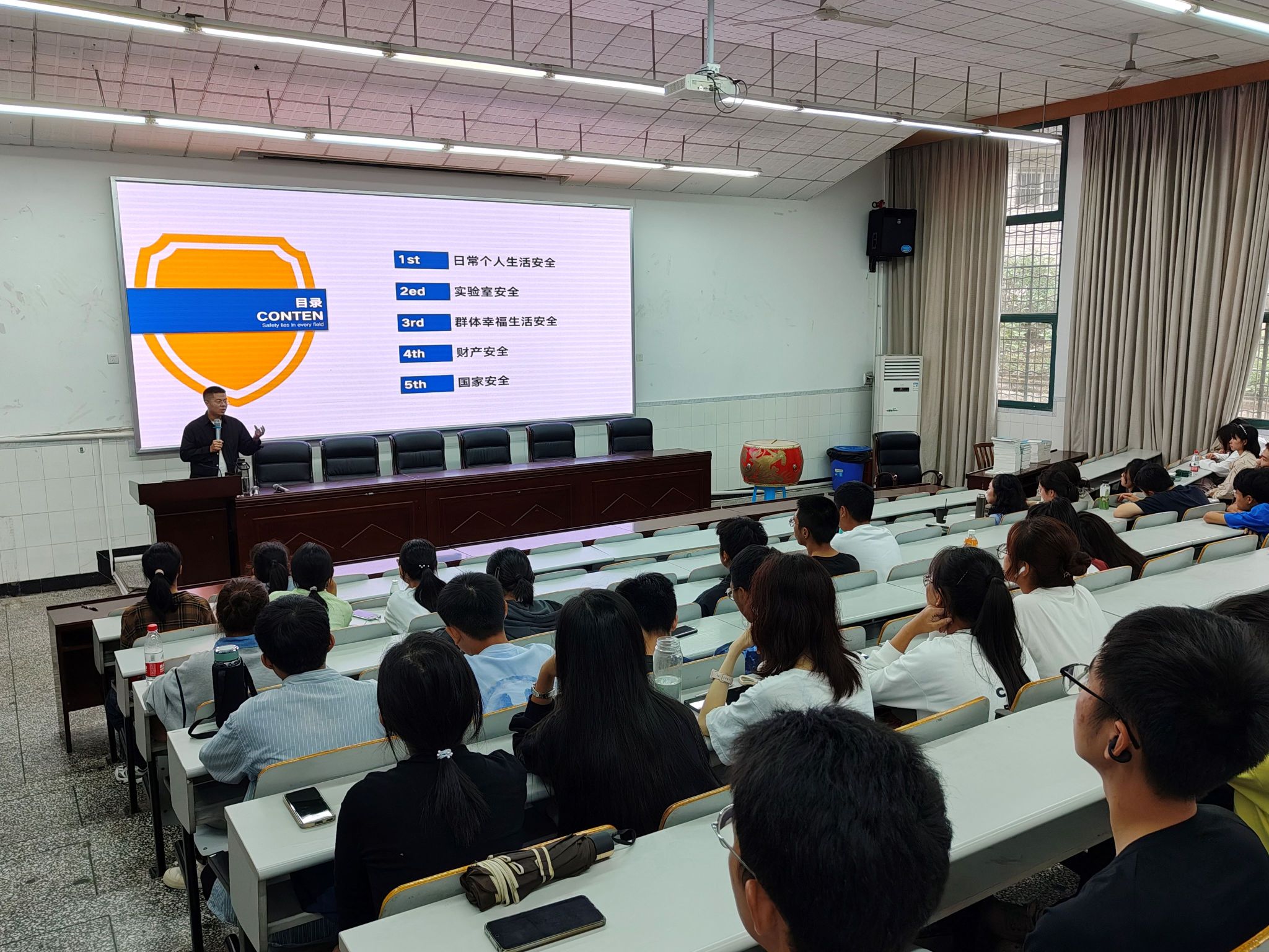 927日下午,新生辅导员贺颖老师从人际交往、学业适应、情绪管理等方面进行了心理健康教育专题讲座,全面介绍了心理求助渠道和学校心理健康教育资源。安全辅导员晏勇老师聚焦校园生活安全、实验室安全、财产安全、国家安全和电信诈骗安全,结合案例数据强调了安全无小事。