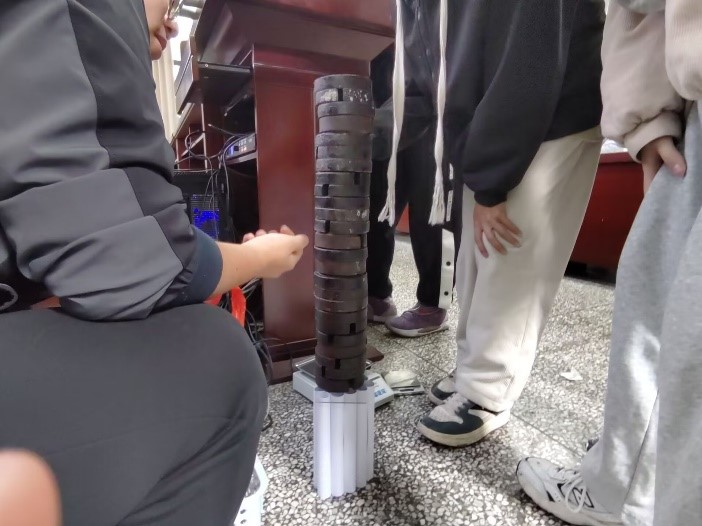 压轴项目“借力承重”承重柱的竞争尤为激烈。前两轮比赛已经让大家沉浸其中,第三轮作为决胜局,更是激发了同学们的竞赛热情。