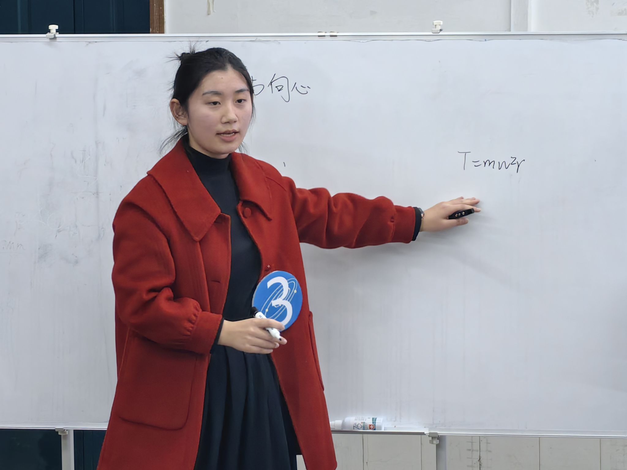 接着是2023级李婧怡上场,她讲授的课题是《离心运动和向心运动》,她从向心运动与离心运动两方对比讲解,层次清晰,强调启发拓展,得到了评委们的一致肯定。
