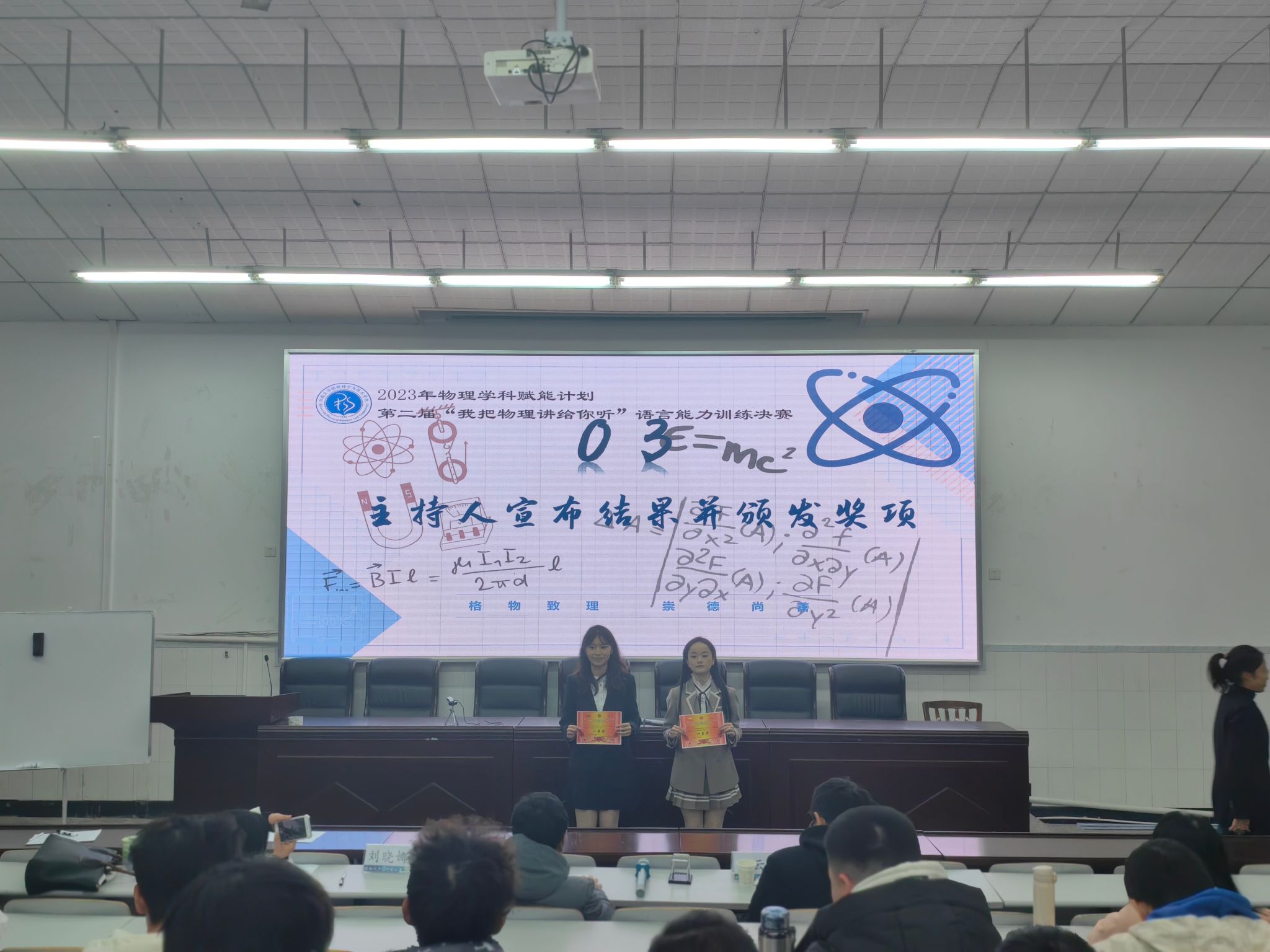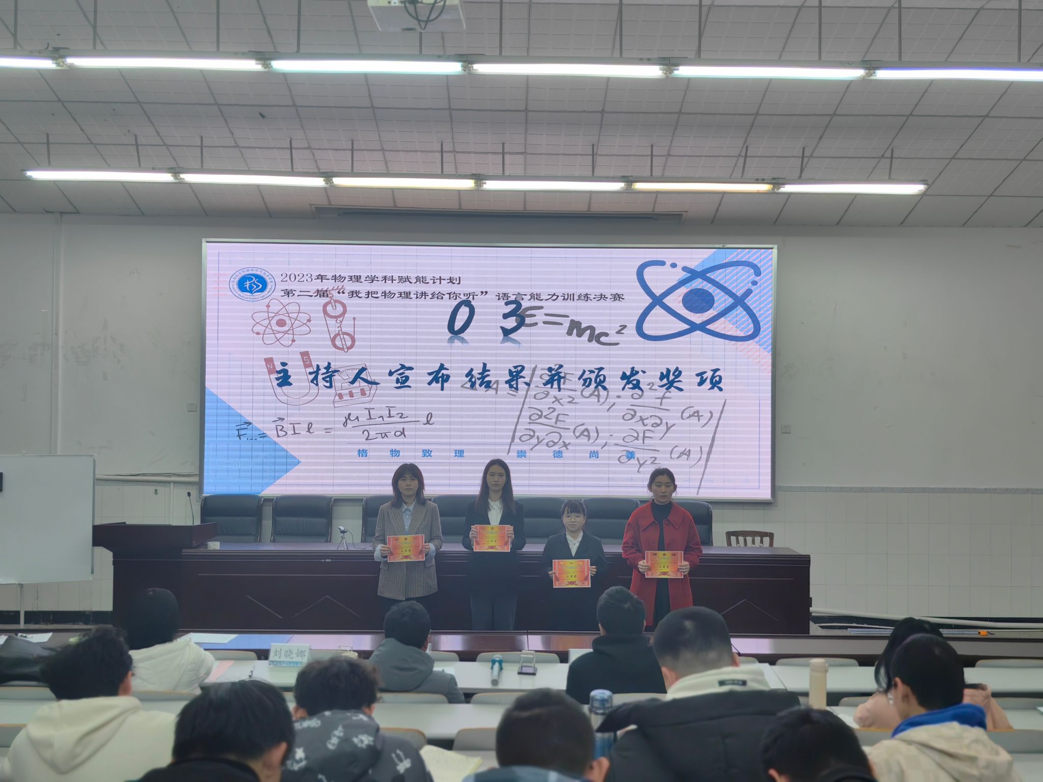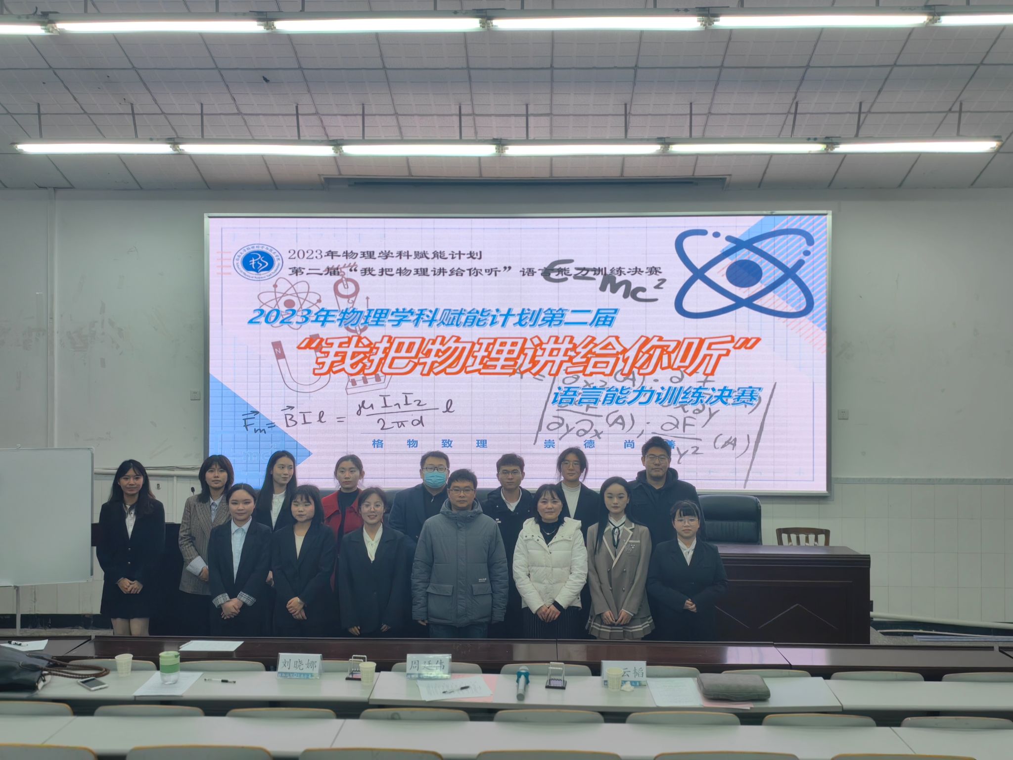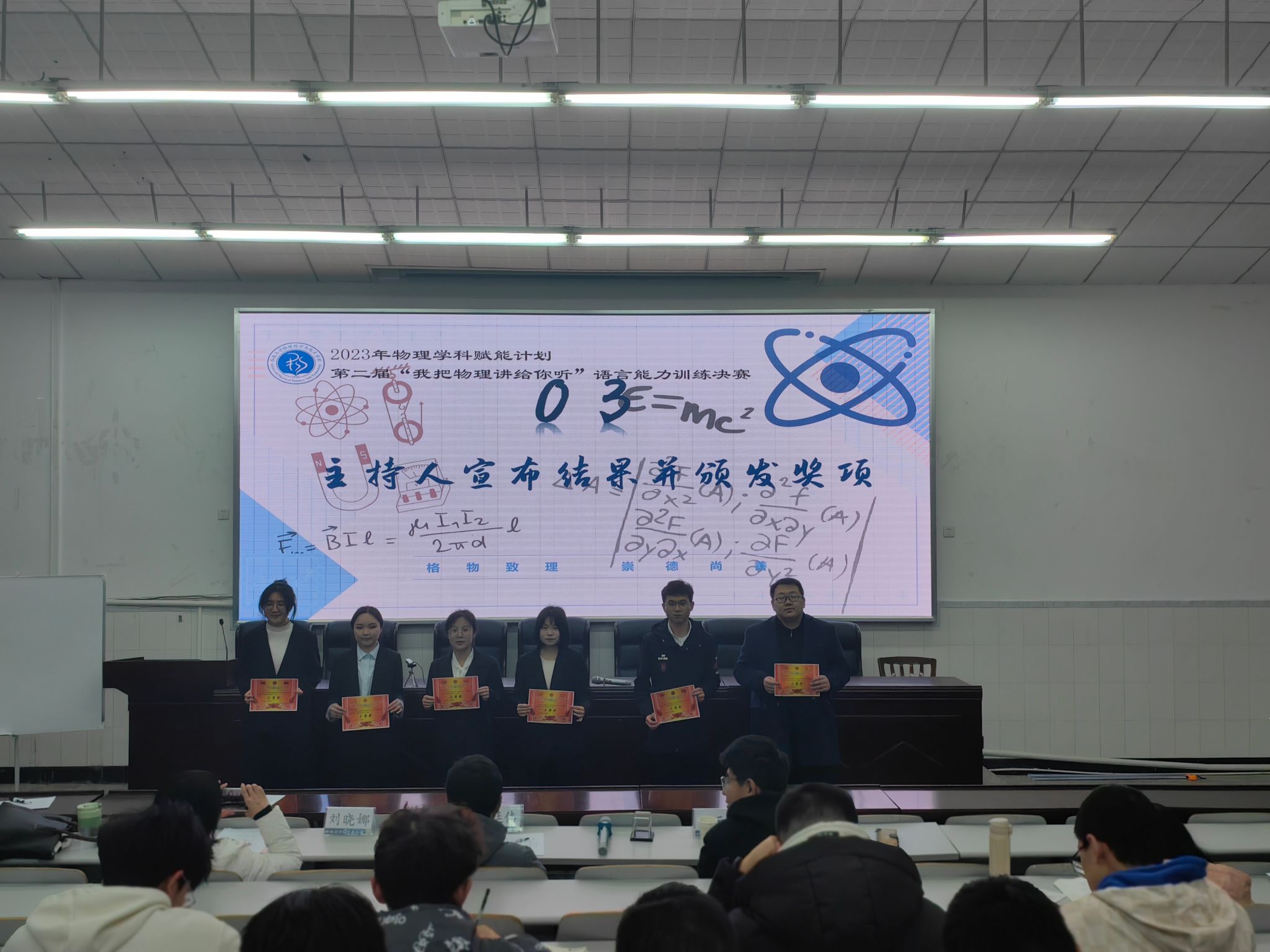 为提高学生物理学科素养,提升语言表达能力,增强就业竞争力,12月17日下午我院在物理大楼大阶梯教室举办了2023年“物理学科素养赋能计划”之第二届“我把物理讲给你听”课前五分钟语言能力训练汇报比赛决赛。