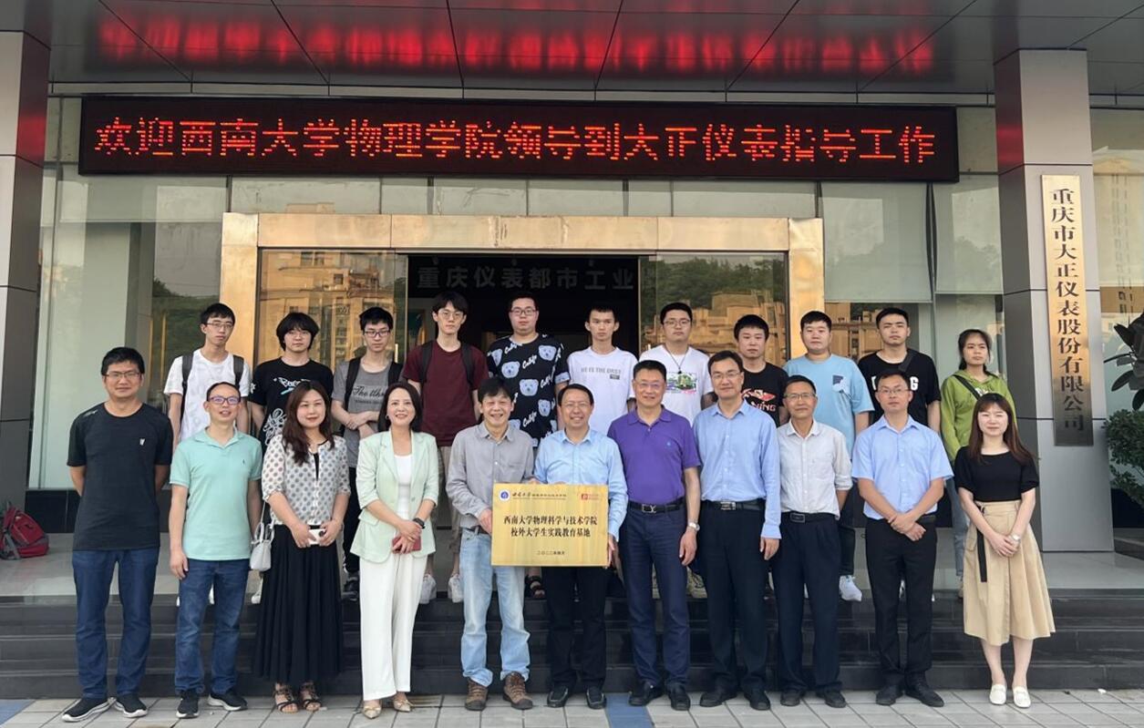 为深入推进校企合作、产教融合,进一步提升物理专业人才培养质量,同时也为了进一步推进毕业生就业工作,5月6日,学院全体领导班子到重庆市大正仪表股份有限公司参观交流,举行了“365英国上市集团校外大学生综合性实践教育基地”授牌仪式。大正仪表股份有限公司周洪琴董事长陪同大家参观了大正仪表股份有限公司的生产厂房,周总还详细地给大家介绍了公司的发展历程以及主要产品。