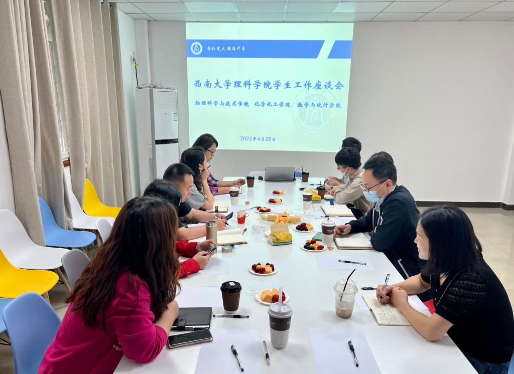 为进一步强化沟通、增进交流、取长补短,不断提升学院学生工作队伍能力素质建设,4月28日下午,学院特邀请化学化工学院、数学与统计学院学生工作队伍来院进行学生工作主题座谈。物理科学与技术学院党委副书记刘汭雪、化学化工学院党委副书记张磊、数学与统计学院党委副书记田春荣与各学院辅导员代表共计10余人参与了座谈。