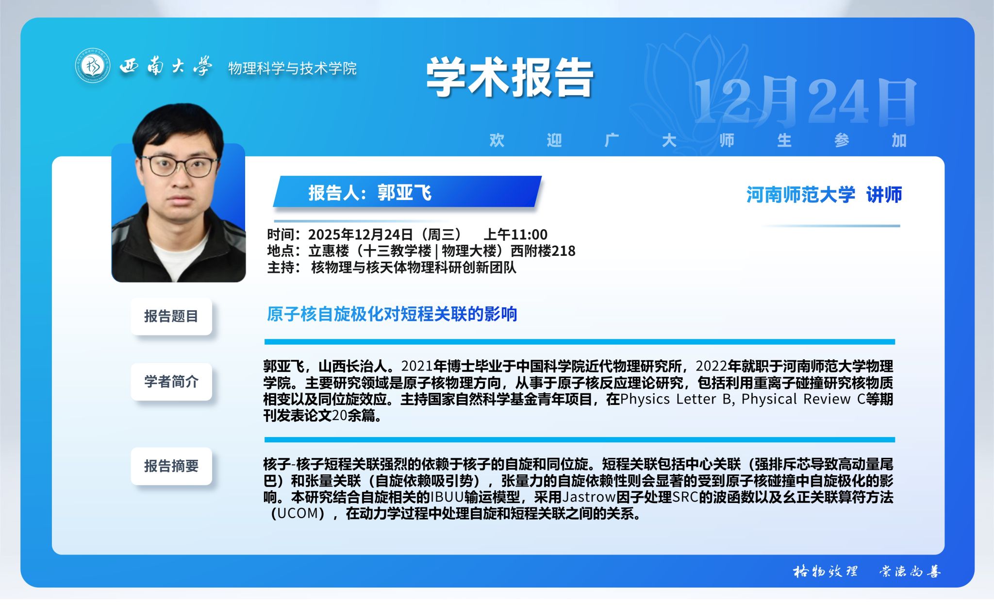 【365英国上市集团】原子核自旋极化对短程关联的影响