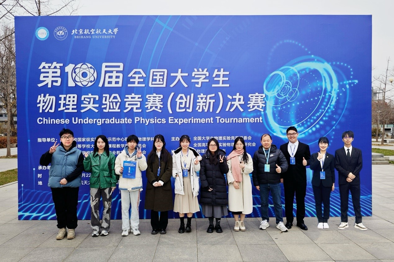 2024年11月22日至24日,第十届全国大学生物理实验竞赛(创新)决赛在北京航空航天大学(沙河校区)举行。学院19名本科生组成的5支参赛队伍经过初赛选拔,4支队伍晋级决赛。在领队孙凯老师的带领下,经过为期3天的激烈角逐,4支队伍全部荣获一等奖,创造了学校在该项赛事中的历史最佳成绩。学校获评优秀组织奖。