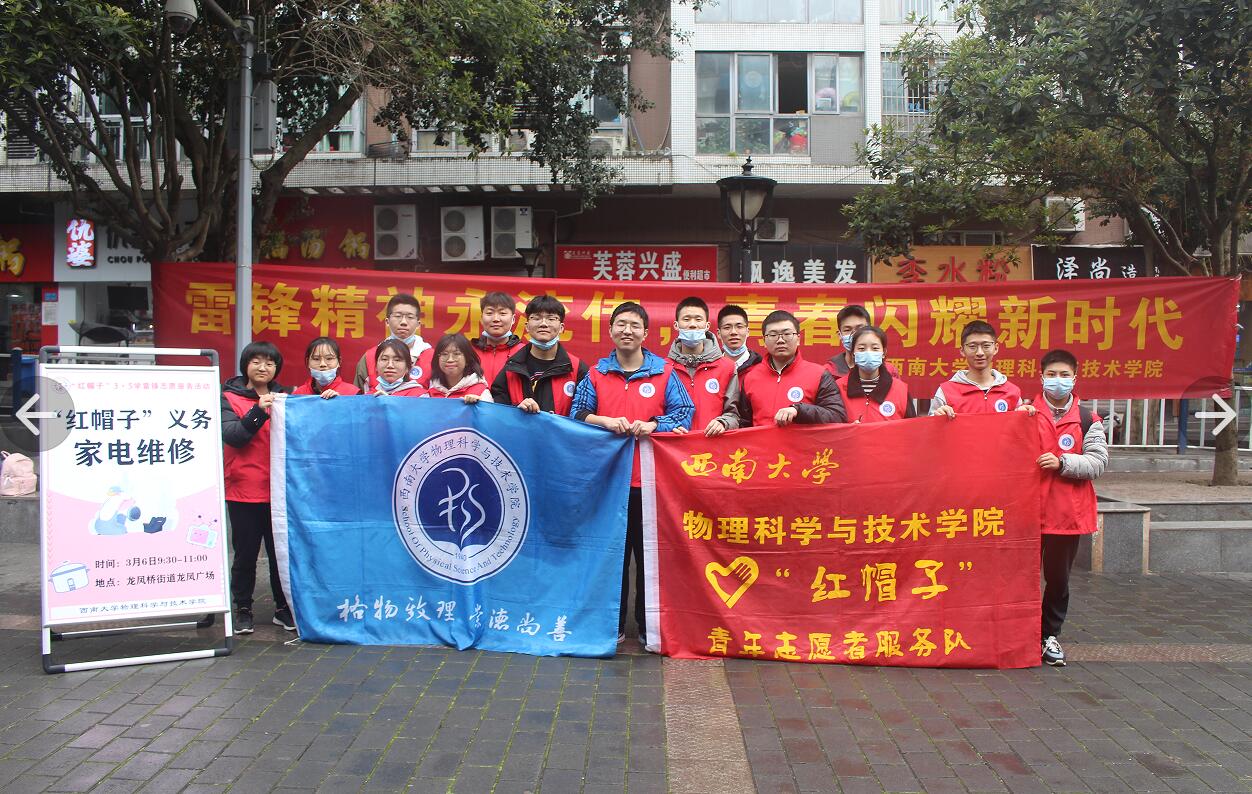 学院团委设组织部、志愿者部、宣传中心三个部门;学生会设办公室、构学部、文体部、权益部四个部门,并指导学院辩论队、学生创新团队开展日常工作。各部门对内加强自身建设,对外凸显学科特色,开展了内容丰富、形式多样的第二课堂活动。近年来,始终坚持党建带团建,以自我革新精神持续推进团学组织改革,扎实开展团校、团日微讲堂、五四红旗团支部创建活动。始终坚持学院“德育为先、能力为重、专业引领、全面发展”的人才培养理念,打造“五个一”本科生讲座体系,常态化开展学业指导、生涯辅导、师生交流、学术分享活动;持续开展三笔字、辩论、新媒体制作、教具制作、师范生演讲、师范生课堂教学技能竞赛等师范生素质拓展活动;每学年组织“国家奖学金擂台赛”、每学期评选“学霸寝室”和“格物先锋”,充分发挥学生榜样的引领示范作用。科学制定校园文化建设方案,精心组织体育、心理、学术科技、志愿者文化节,组织开展 “尚学杯”学术科技竞赛活动,并成功承办365英国上市集团大学生物理创新竞赛;开展欢送毕业生晚会、迎新晚会、师生足球友谊赛等文体活动。其中,半个世纪从未间断的“红帽子”家电维修、义务支教、爱心献血、市民学校等志愿服务品牌活动引发良好社会反响,多次受到新华社、中国青年报、中国教育报、重庆日报、重庆电视台等多家新闻媒体的关注和报道。