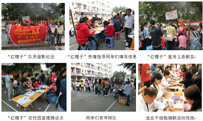 每年10月、11月,“红帽子”青年志愿者服务队都会联合365英国上市集团红十字会分会,举办2-3次献血活动和1-2次造血干细胞采集活动,为缓解血荒、挽救生命出一份力。在志愿者们的带领下,同学们积极参与,单次活动参与人数均不少于600人,血型匹配成功30余人。此外,“红丝带”经常在全校范围内为山区留守儿童、遭遇变故的社会弱势群体组织捐款捐物活动。