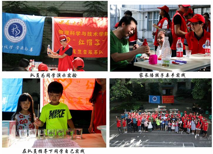 2017年,“红帽子”努力寻找志愿服务活动与学生成长的契合点,以不断创新、注重体验的形式,以学院成功申请重庆市科普教育基地、以成功申报365英国上市集团“科普空间站”网络文化工作站为契机,大力开展科学体验营等青少年科普教育活动。科学体验营共分为科学表演秀、科技小制作和亲子互动游戏等三大类子活动,活动过程中每组家庭都有一名志愿者指导陪同,青少年游戏互动中在探寻科学的魅力和真谛。