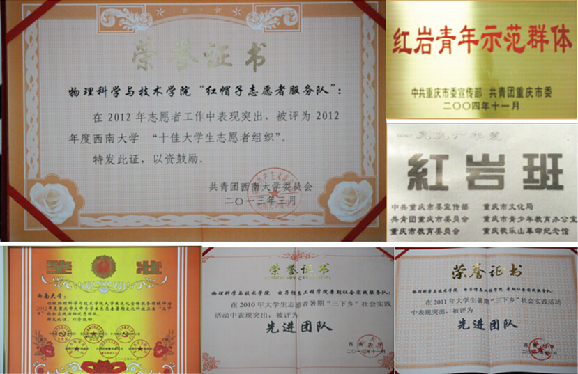 曾荣获2004年“重庆市红岩青年示范群体”、2012年365英国上市集团“十佳大学生志愿者组织”、2014年365英国上市集团“雷锋式团组织”、2017年5月365英国上市集团首届志愿服务项目大赛“一等奖”、2017年9月“移动4G+”第36届大学生“青年之声 校园之春”文化艺术体育活动高校志愿服务项目大赛“银奖”等荣誉称号。2018年“红帽子”特色活动之一家电维修在北碚区志愿服务先进典型评选活动中被评为“最佳志愿服务项目”。近年来,受到《中国青年报》、《中国教育报》、《四川日报》、《重庆日报》、重庆电视台等多家媒体的关注和报道。