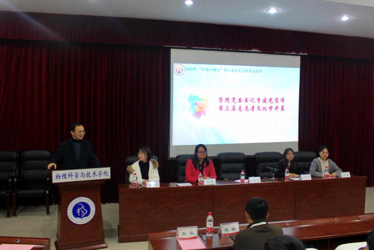 11月29日晚,学院第三届“寻找红帽子”青年志愿者文化节开幕式在物理大楼小阶梯教室举行。学院党委书记李建光,团委书记贺颖、2019级辅导员周冬叶,以及学院第十四届团委学生会主席宋睿、副主席易聪聪、外国语学院志愿者部部长刘嘉骥参加了活动。学院“红帽子”青年志愿者服务队成员、“红帽子”本科生党员先锋队队员、科普创作社成员,以及各年级本科生代表来到了活动现场。仪式由学院团委副书记叶彦伶主持。