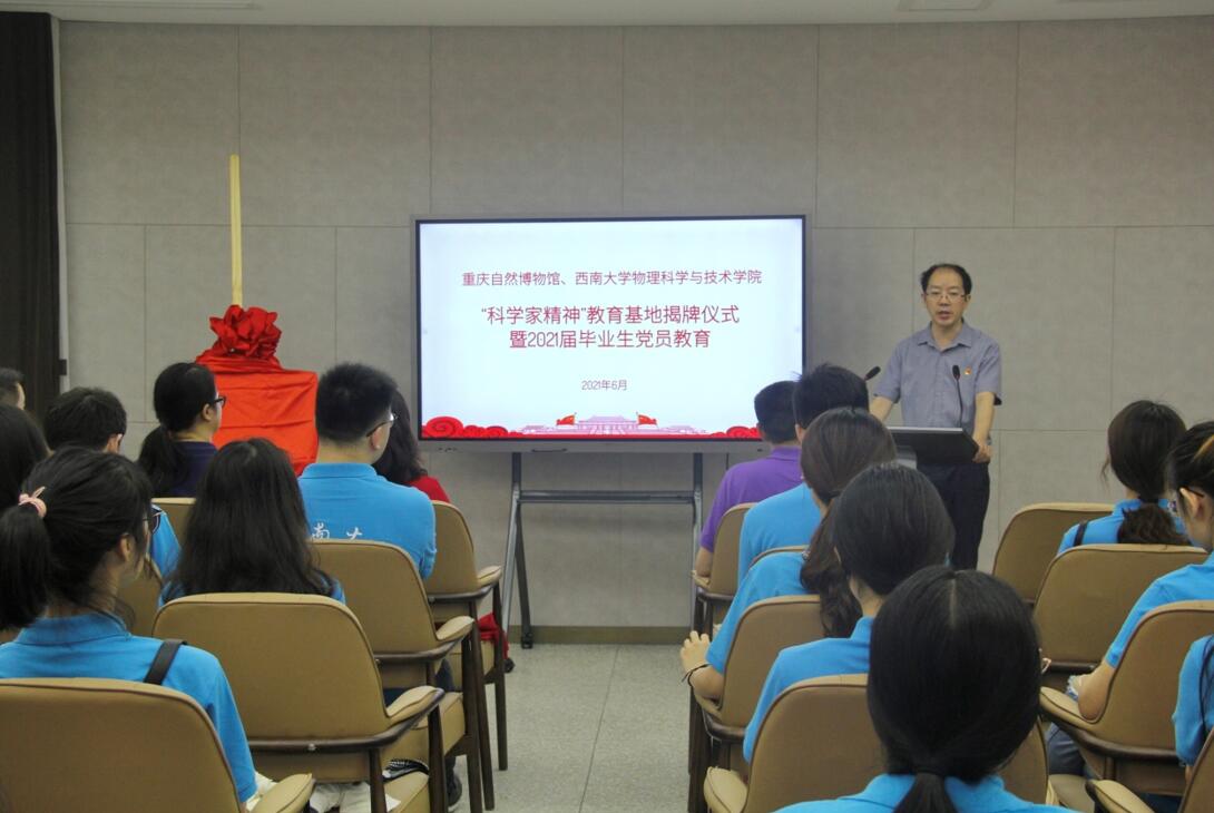 为大力弘扬党史中的科学家精神,进一步将党史学习教育常态化,学院与重庆自然博物馆达成共建“科学家精神”教育基地的合作共识,6月10日,双方在中国西部科学院旧址陈列馆举办了“科学家精神”教育基地揭牌仪式暨系列毕业生党员教育活动之“上一堂科学史实践课,做科学家精神的接班人”。