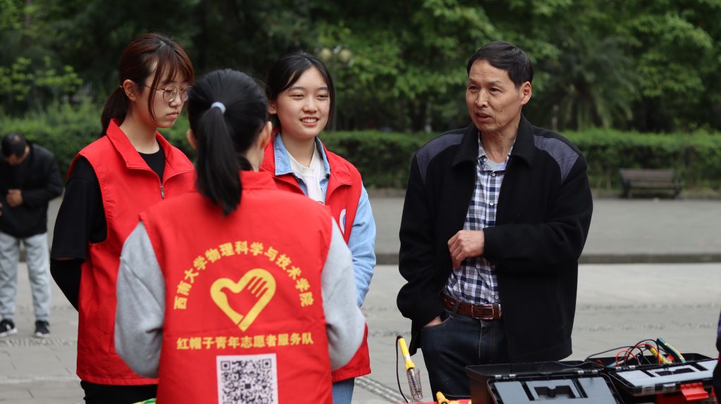 维修期间,学院退休教师牟波佳老师也来到现场与志愿者们交流,分享了他过去指导大学生参加实践活动的经历,讲解了电工学等知识的实际运用以及与居民的交流互动技巧。2021级师范生王沛阳表示:“市民朋友们欢迎‘红帽子’,老师们支持关心‘红帽子’,这些激励着我们传承传统,弘扬雷锋精神,更广泛地参与社区服务,真正做到在学习中实践,在实践中学习。”