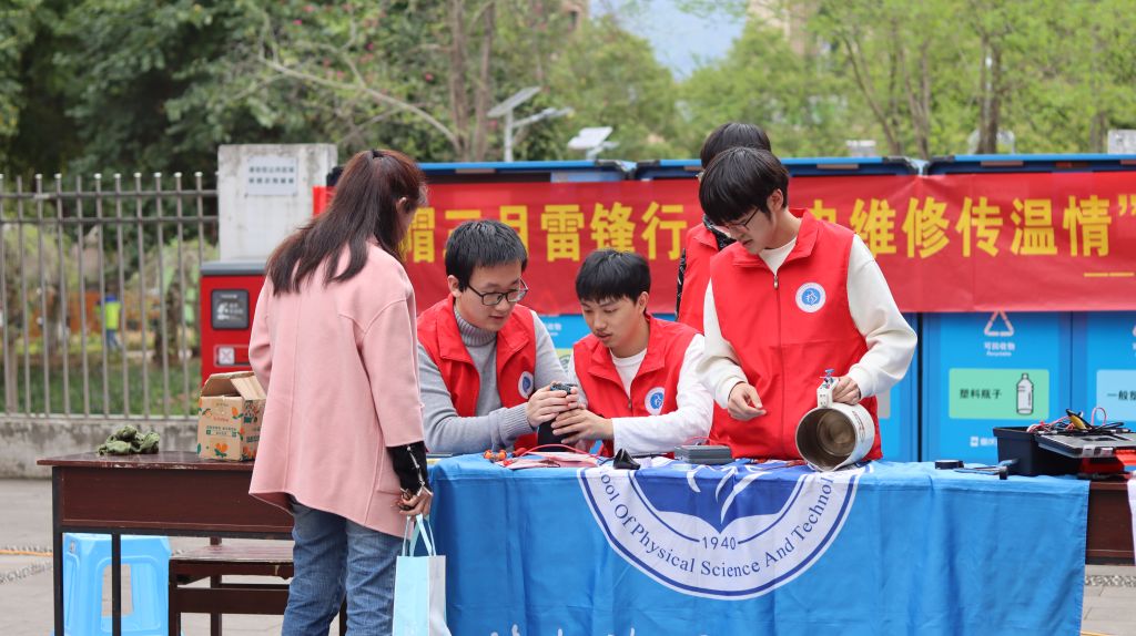 319日下午,学院“红帽子”青年志愿者队受邀赴学苑小区开展义务家电维修活动。