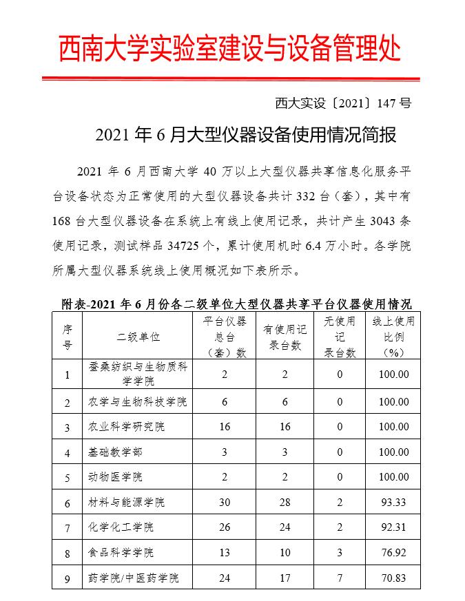2021年6月大型仪器设备使用情况简报