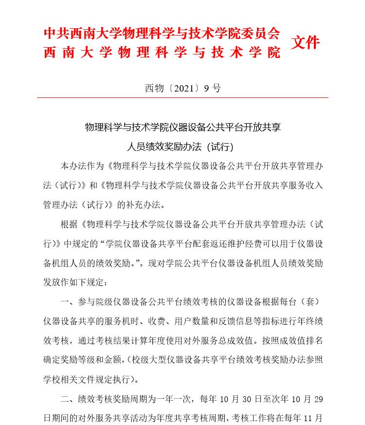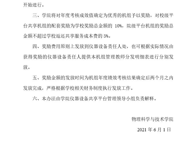 物理科学与技术学院仪器设备公共平台开放共享人员绩效奖励办法(试行)